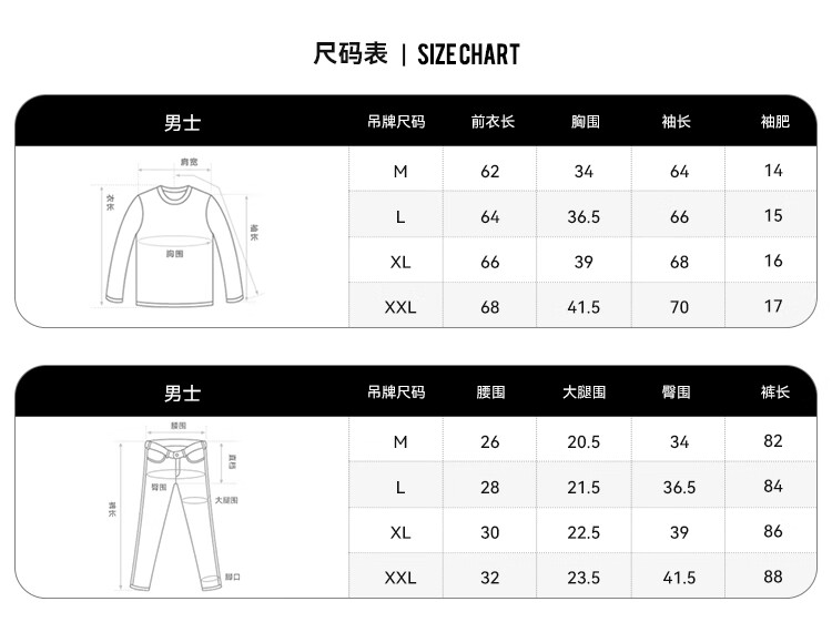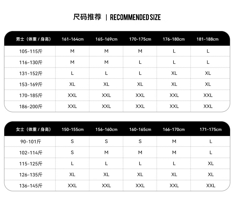 China (cm) 160-165/84-86 165-170 / 88-90 167-172 / 92-96 168-173 / 98-102 170-176 / 106-110