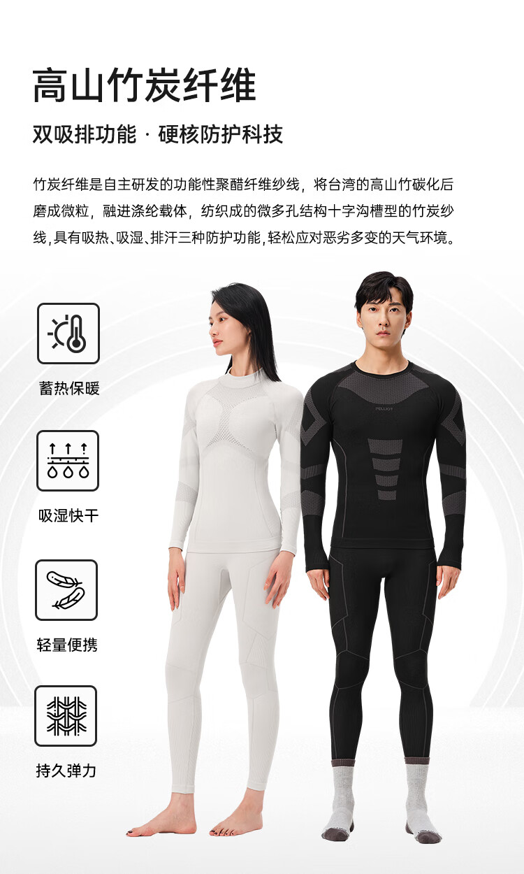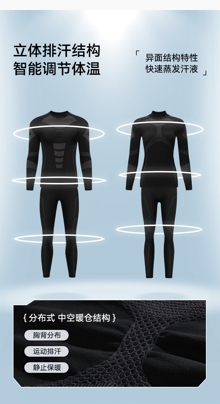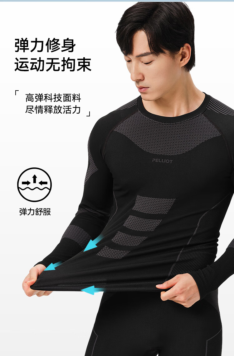 Pelliot thermal functional underwear compression clothing men's and women's ski quick-drying velvet tights 11331801 men's black L