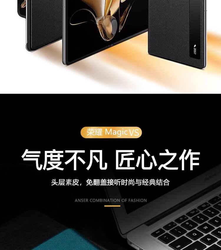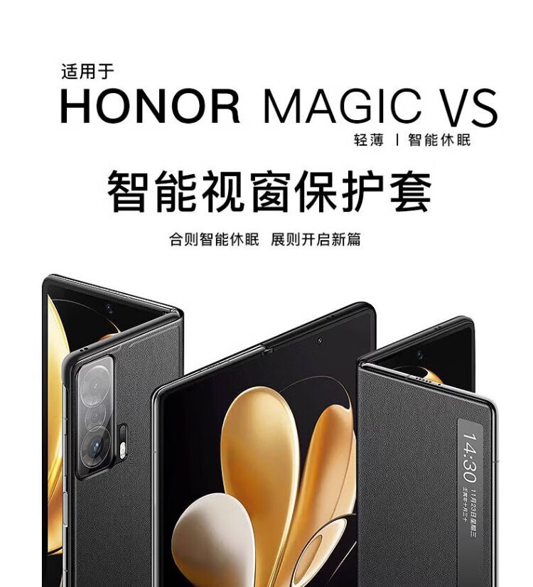 Genuine for Honor Folding Screen Magic vs Mobile Phone Case Huawei vs Smart Leather Flip Window Protective Cover Ultimate Edition Genuine Leather All-Inclusive Anti-fall Case Classic Black