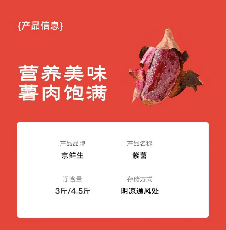 Jingxiansheng Shandong Violet Purple Sweet Potato, net weight 3Jin Jin is equal to 0.5kg, single fruit 100g + fresh vegetables, sweet potatoes and sweet potatoes, straight from the source