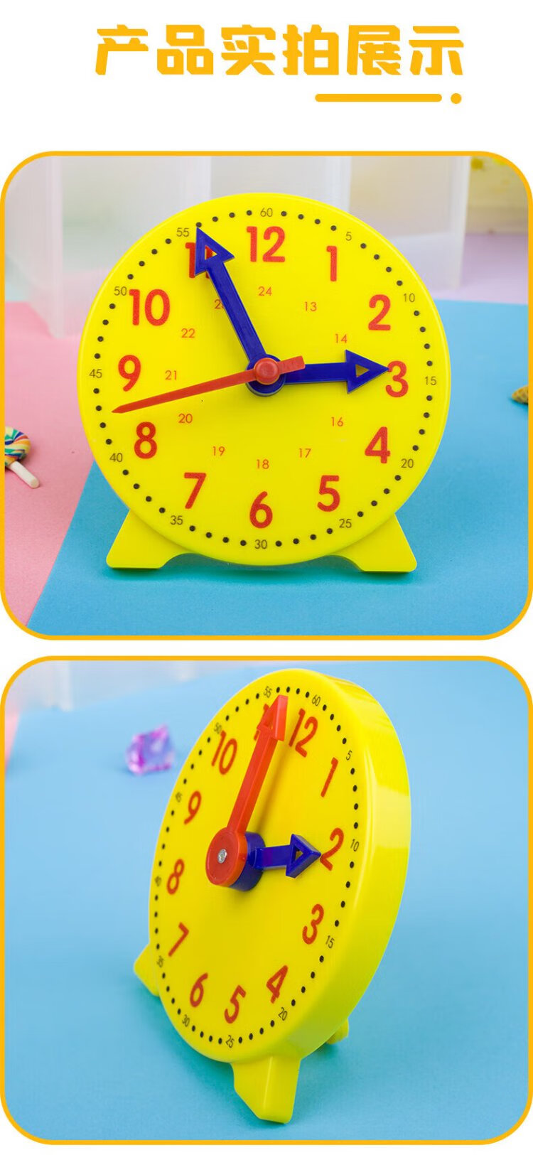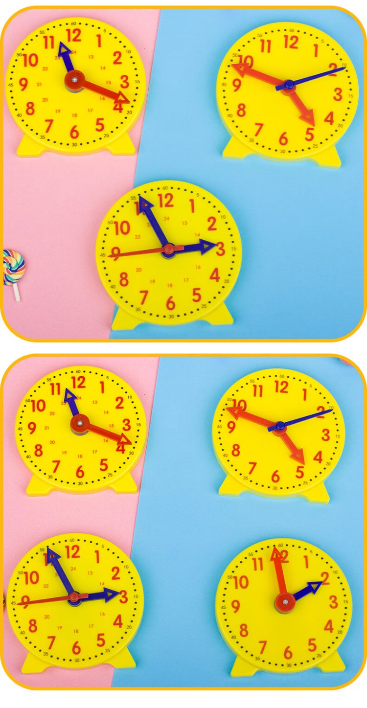 BOJIAO clock model primary school students mathematics first and second grade clock children's teaching learning tools learning to know time yellow clock model 24 hours two-hand linkage