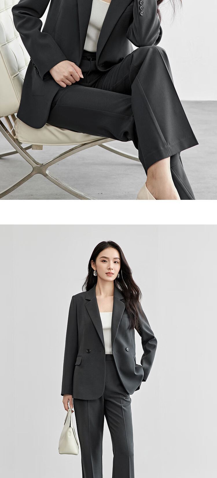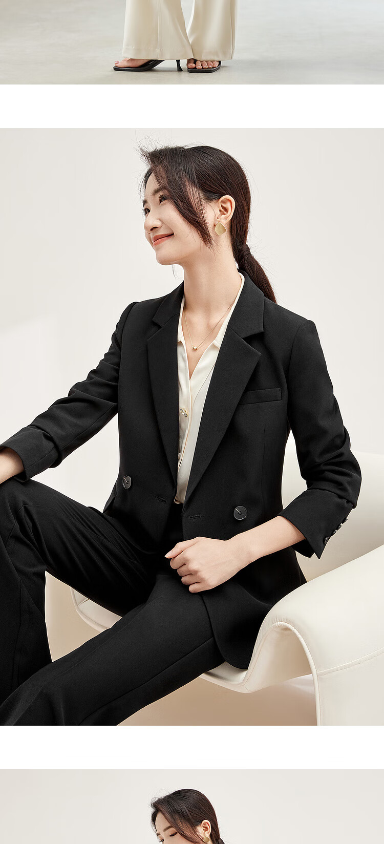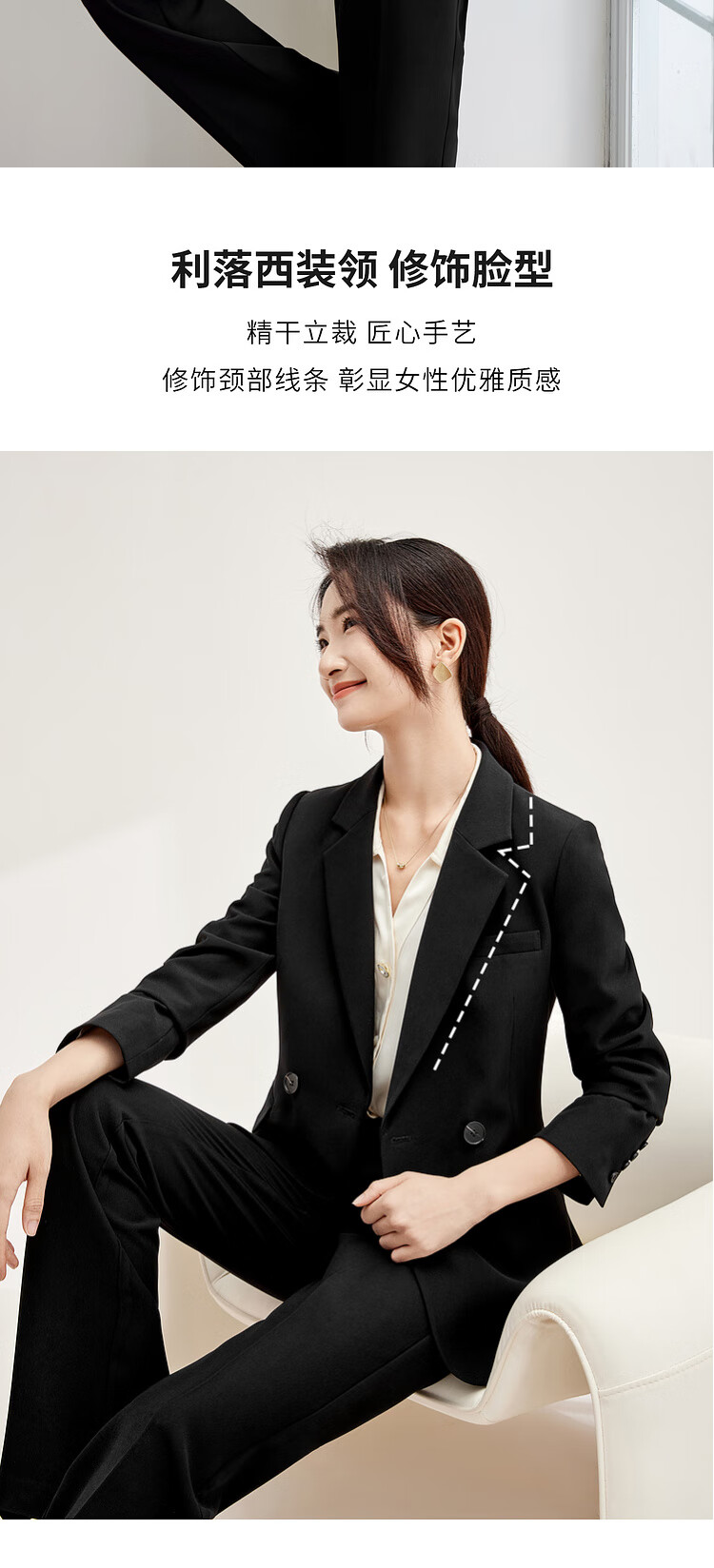 Shandubila Professional Commuting Suit Women's Spring and Autumn Formal Suit Jacket Pants Interview Two-piece Set Black M