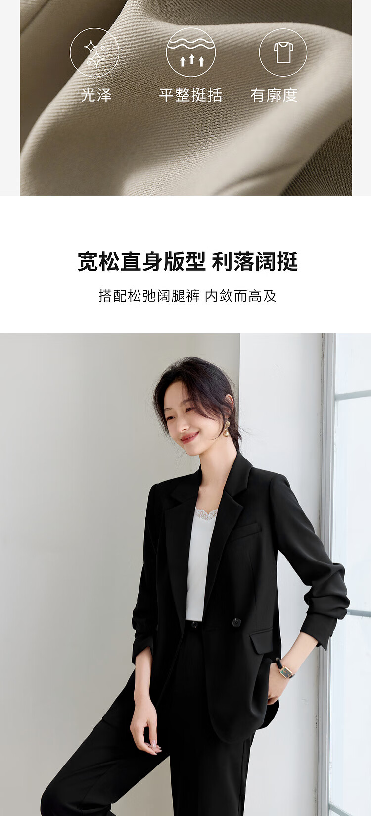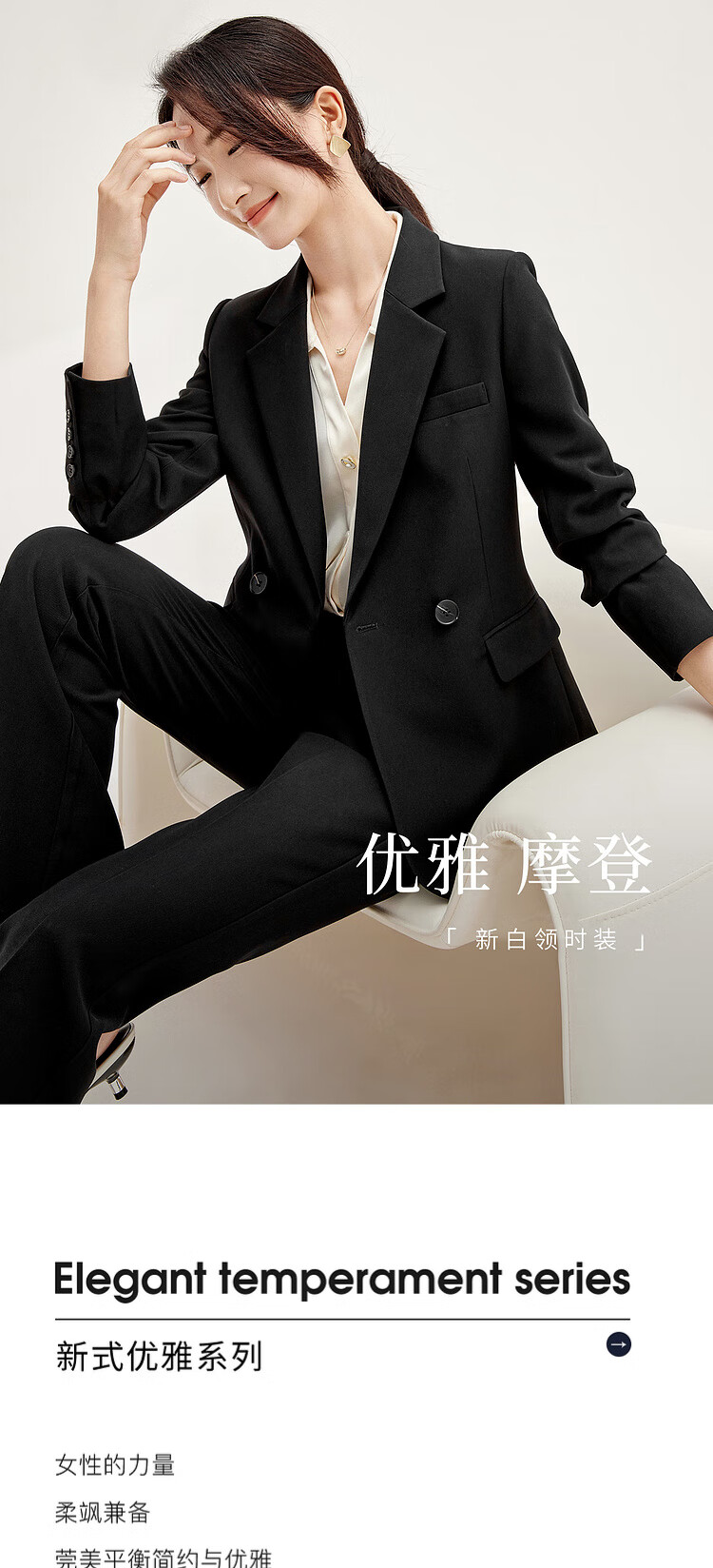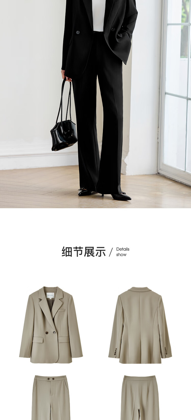 Shandubila Professional Commuting Suit Women's Spring and Autumn Formal Suit Jacket Pants Interview Two-piece Set Black M