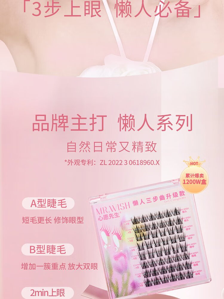 Mr. Wish Glue False Eyelashes Lazy Three Steps Upgraded ABA Type Eyelashes Female Natural Simulation Novice Feather Fan