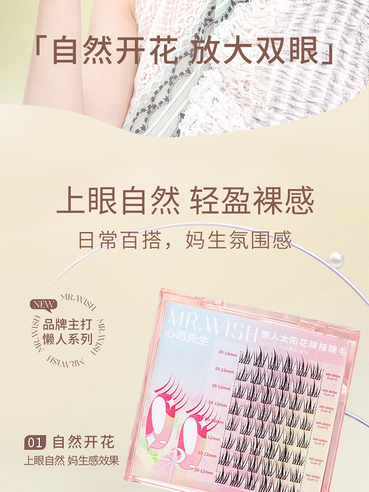 Mr. Wish Glue Style False Eyelashes Lazy Sun Flower 9-11mm Grafted Supernatural Comic Newbie No Makeup Jingdong Gift