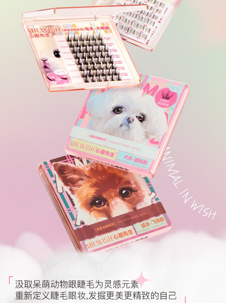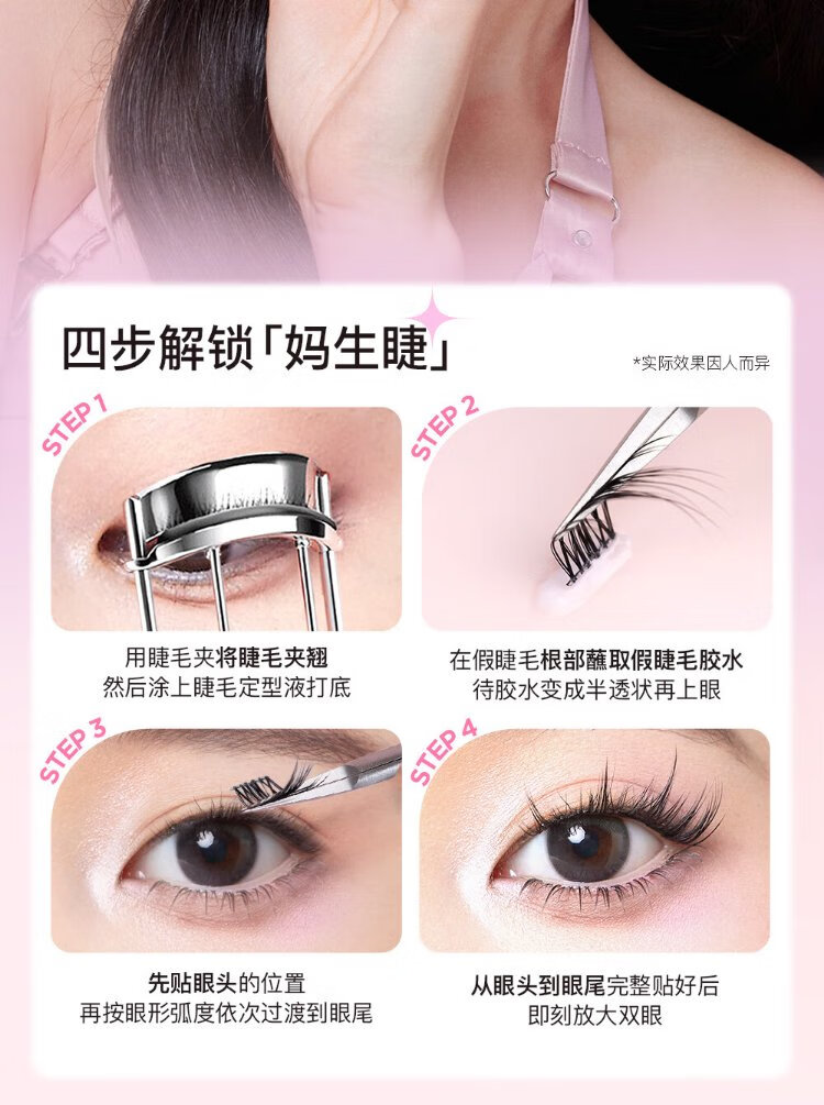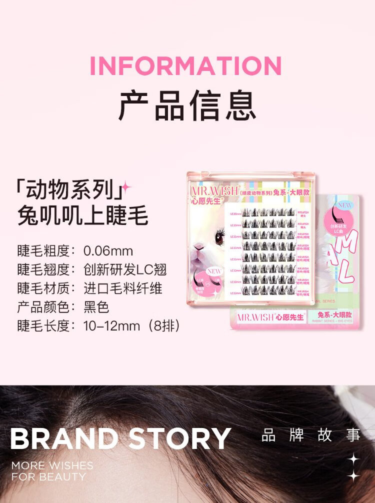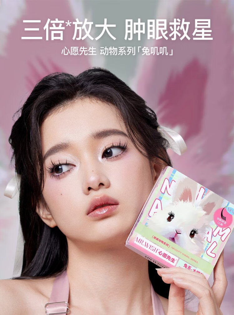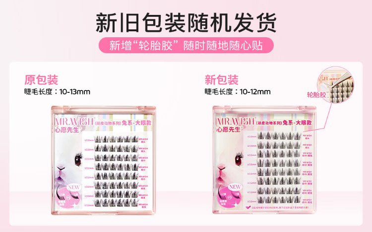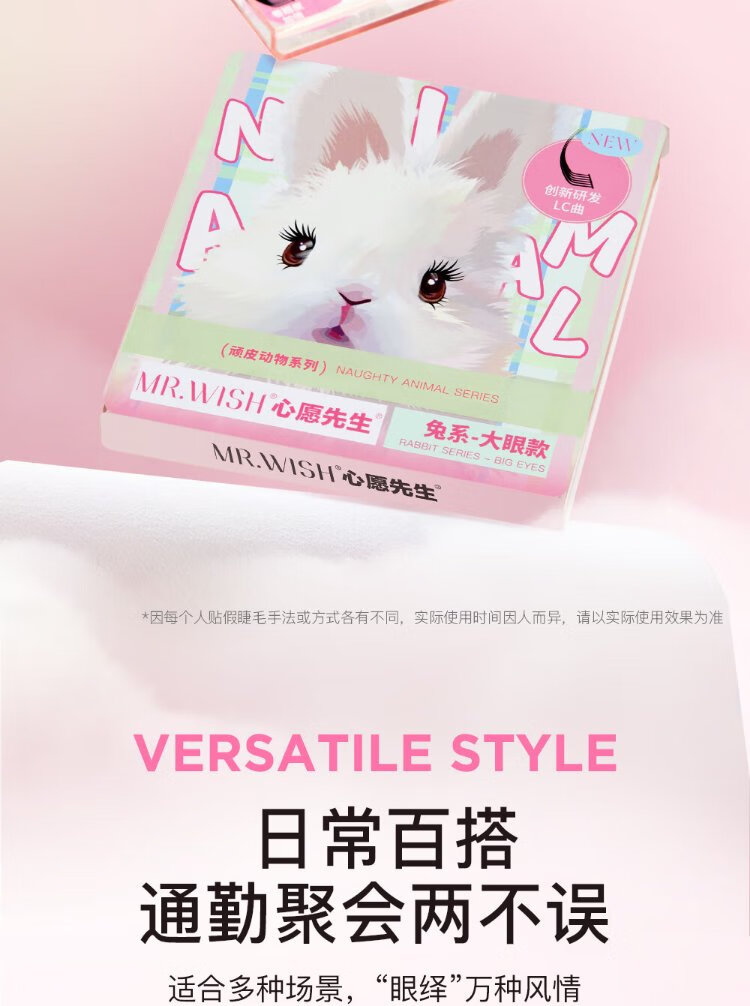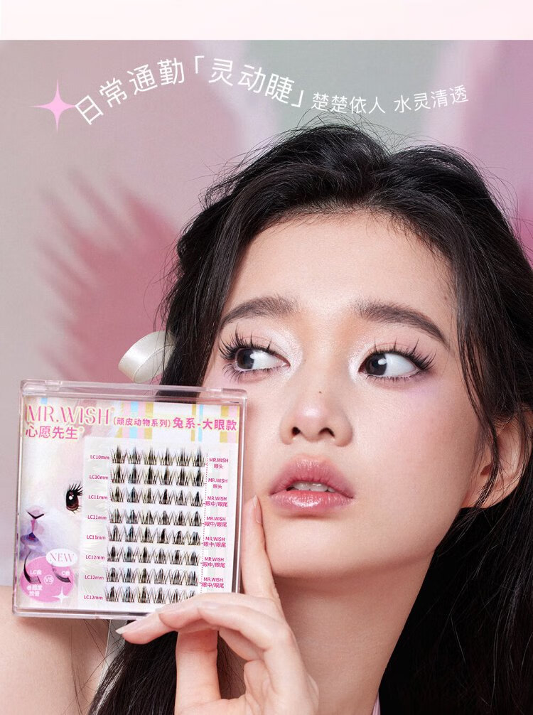 Mr. Wish rabbit false eyelashes with swollen eye bubbles to enlarge both eyes, segmented lazy eyelashes for women with natural curling
