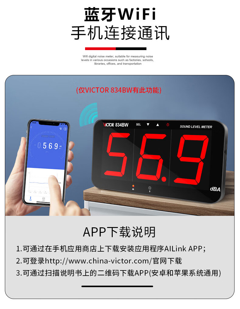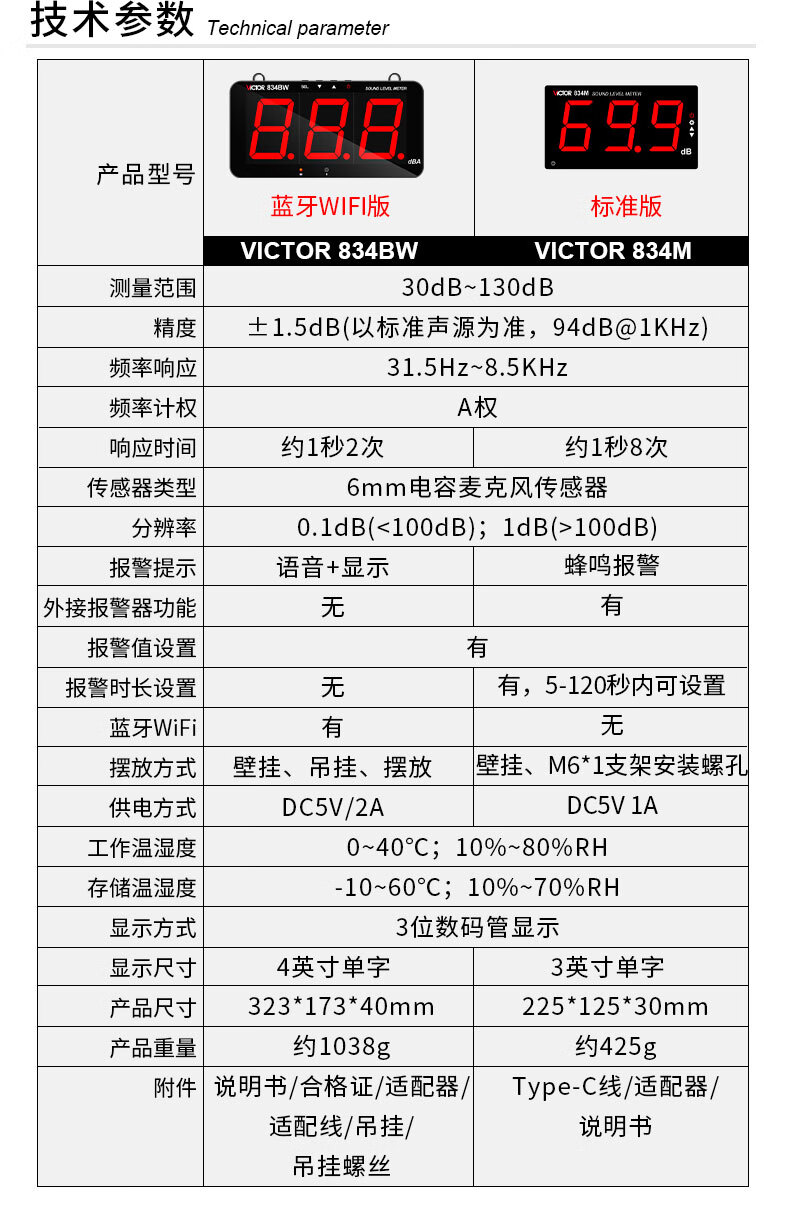 Victory Instrument (VICTOR) wall-mounted decibel tester noise meter decibel meter noise tester sound level meter VC834M
