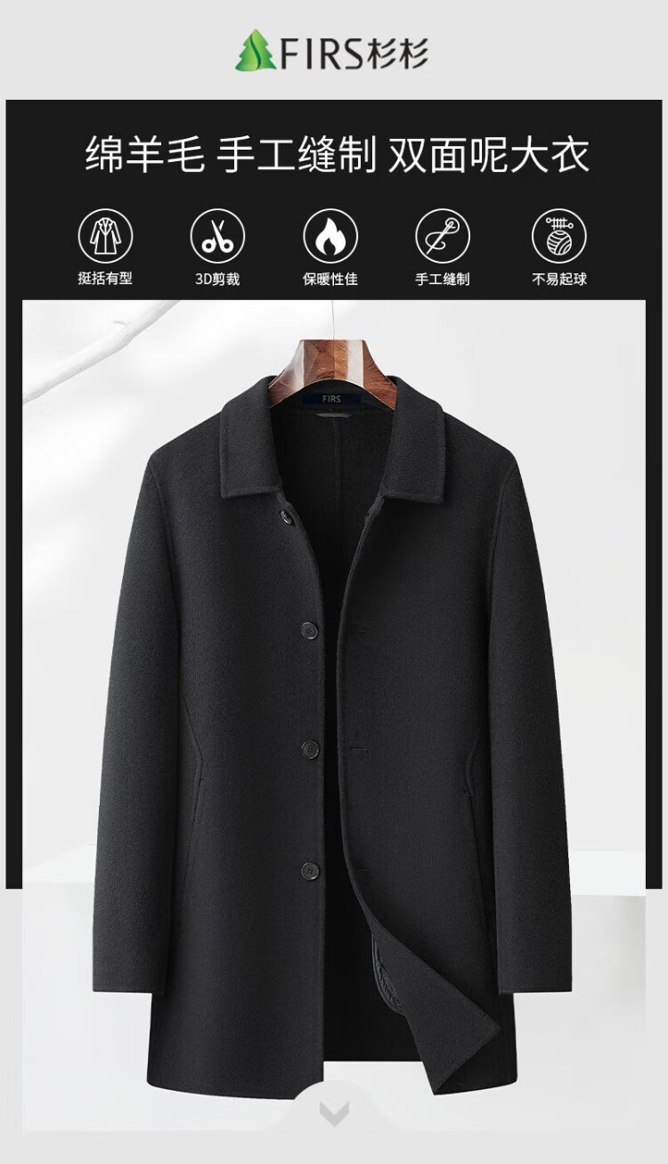 Shanshan wool double-sided woolen coat men's autumn and winter mid-length windbreaker jacket casual warm woolen coat top men's clothing