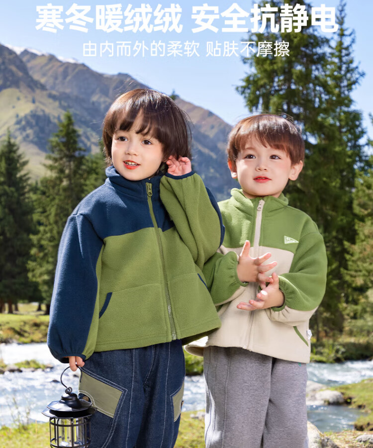 Qi Qi Xiong Boys' Polar Fleece Jackets Children's Autumn Tops Baby Plush Clothes Autumn and Winter Thickened
