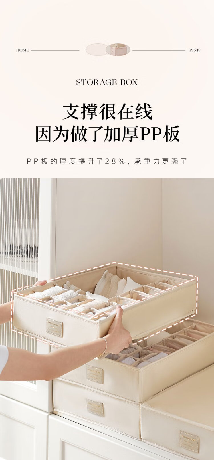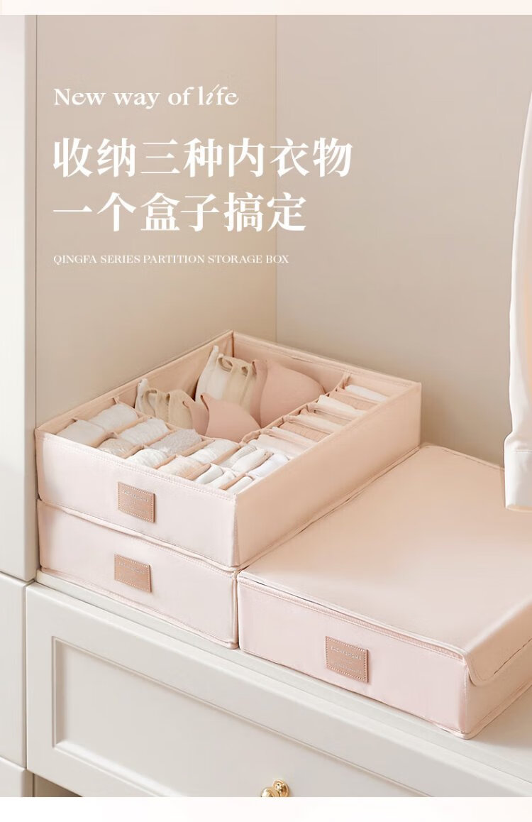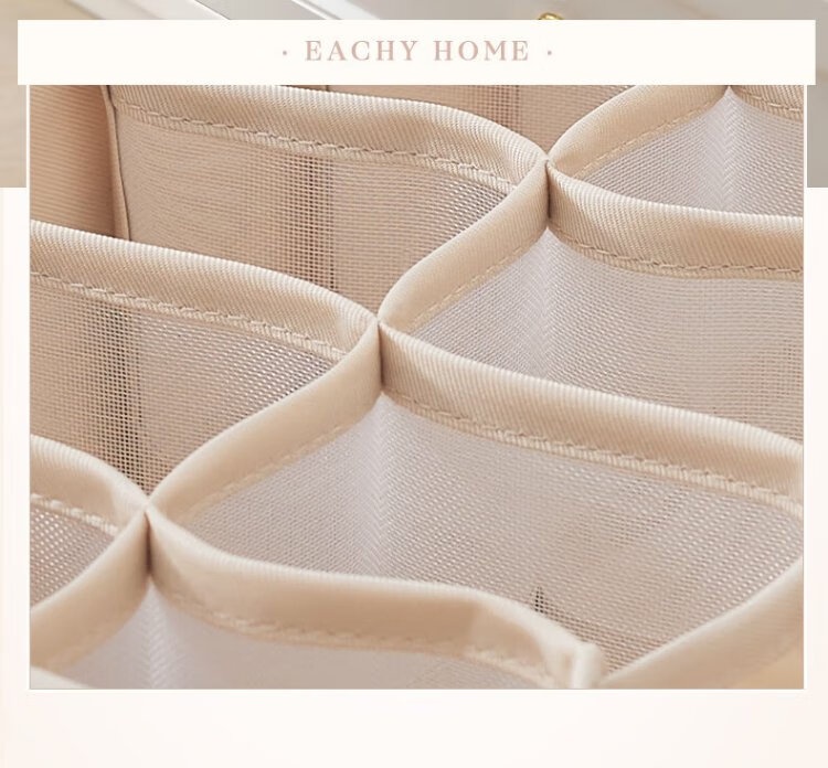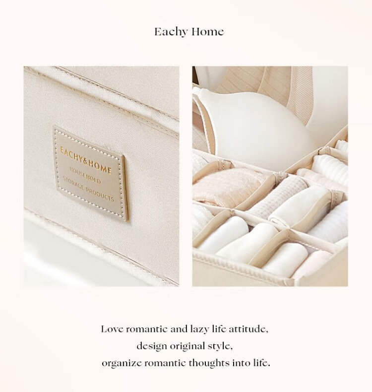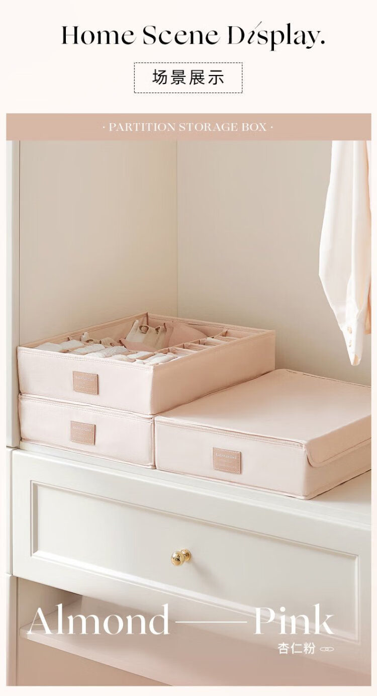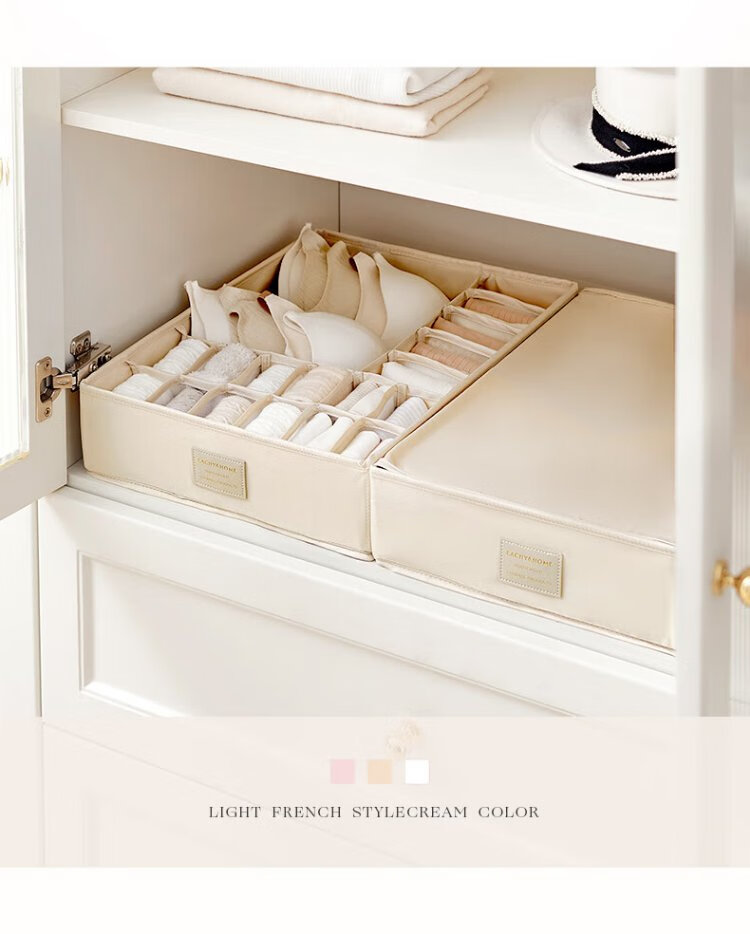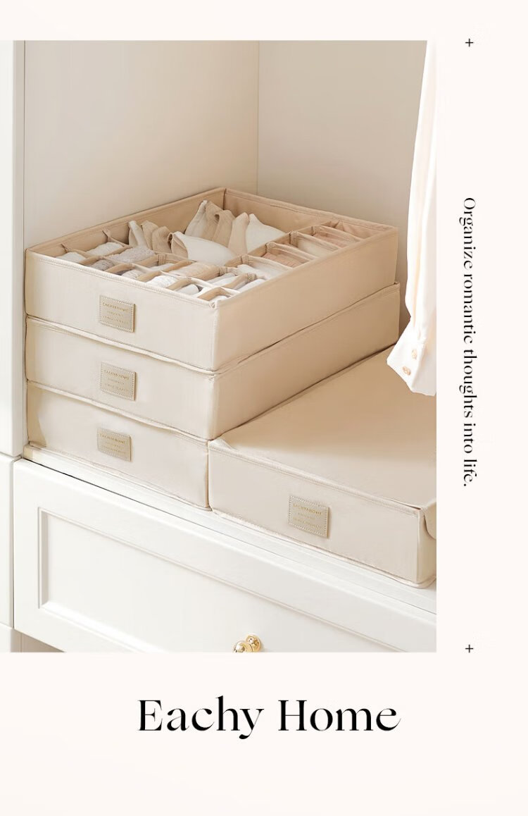 EACHY Underwear Storage Box Adjustable Drawer Storage Divided Sock Organizer Box Underwear Box-Almond Flour M