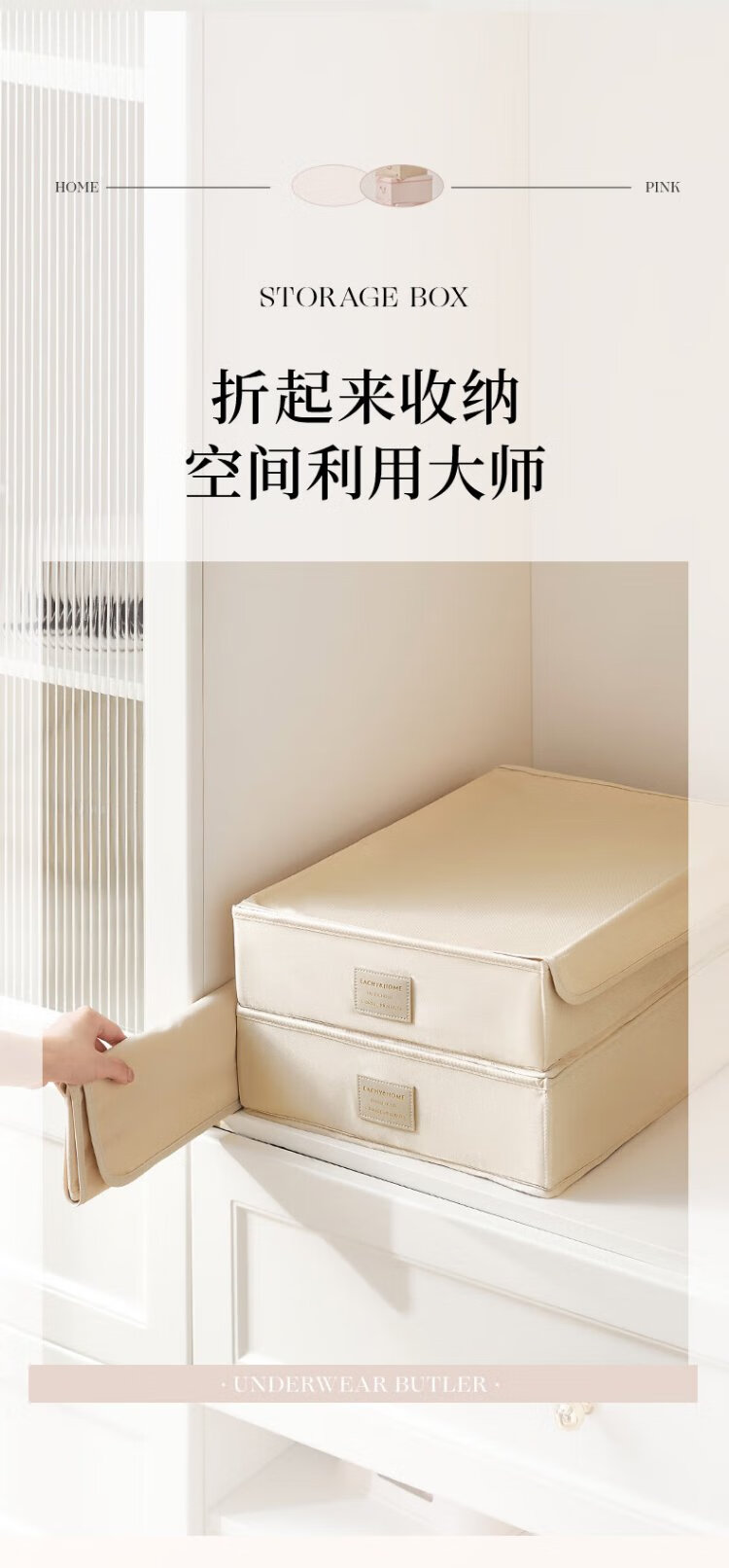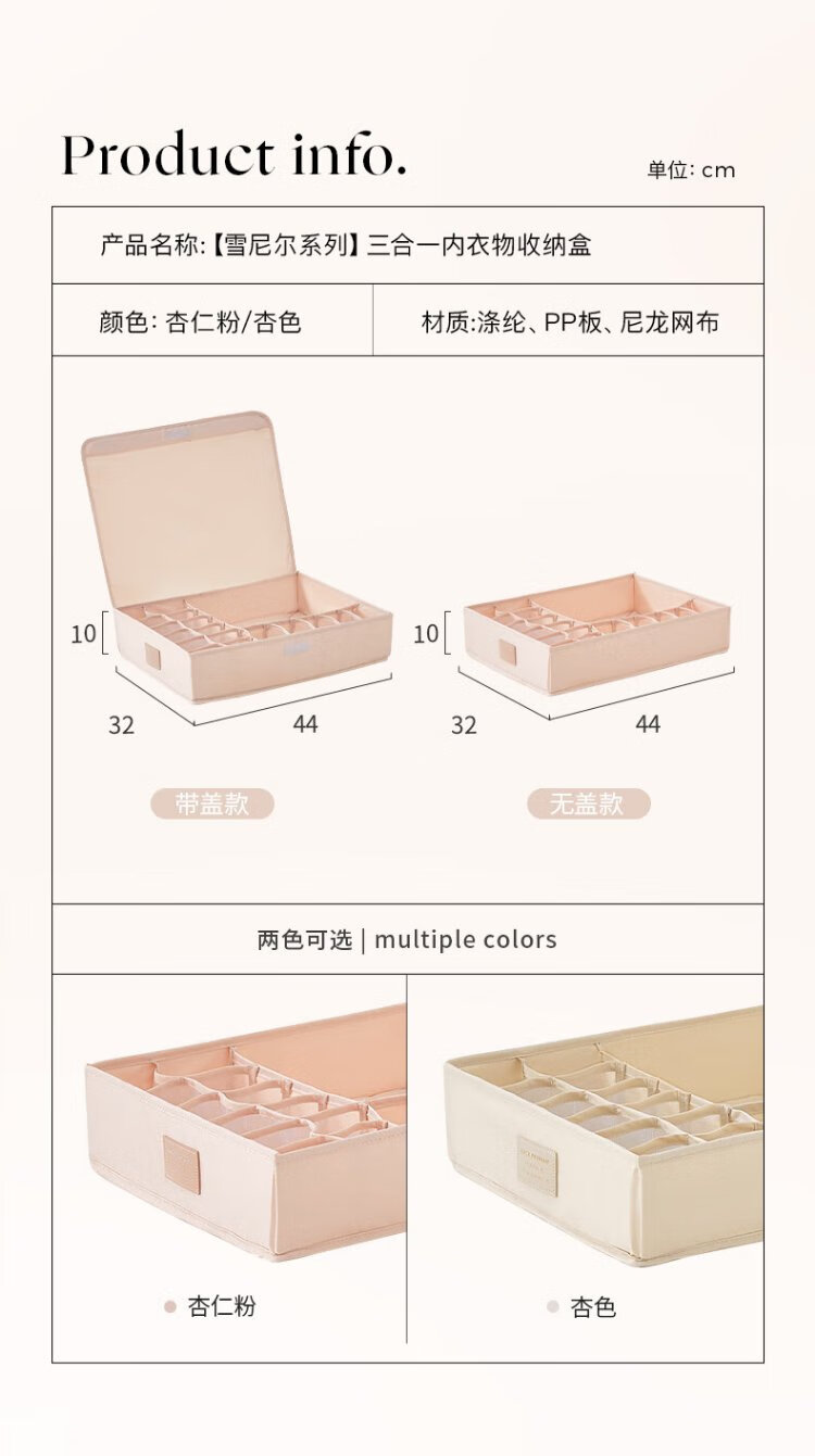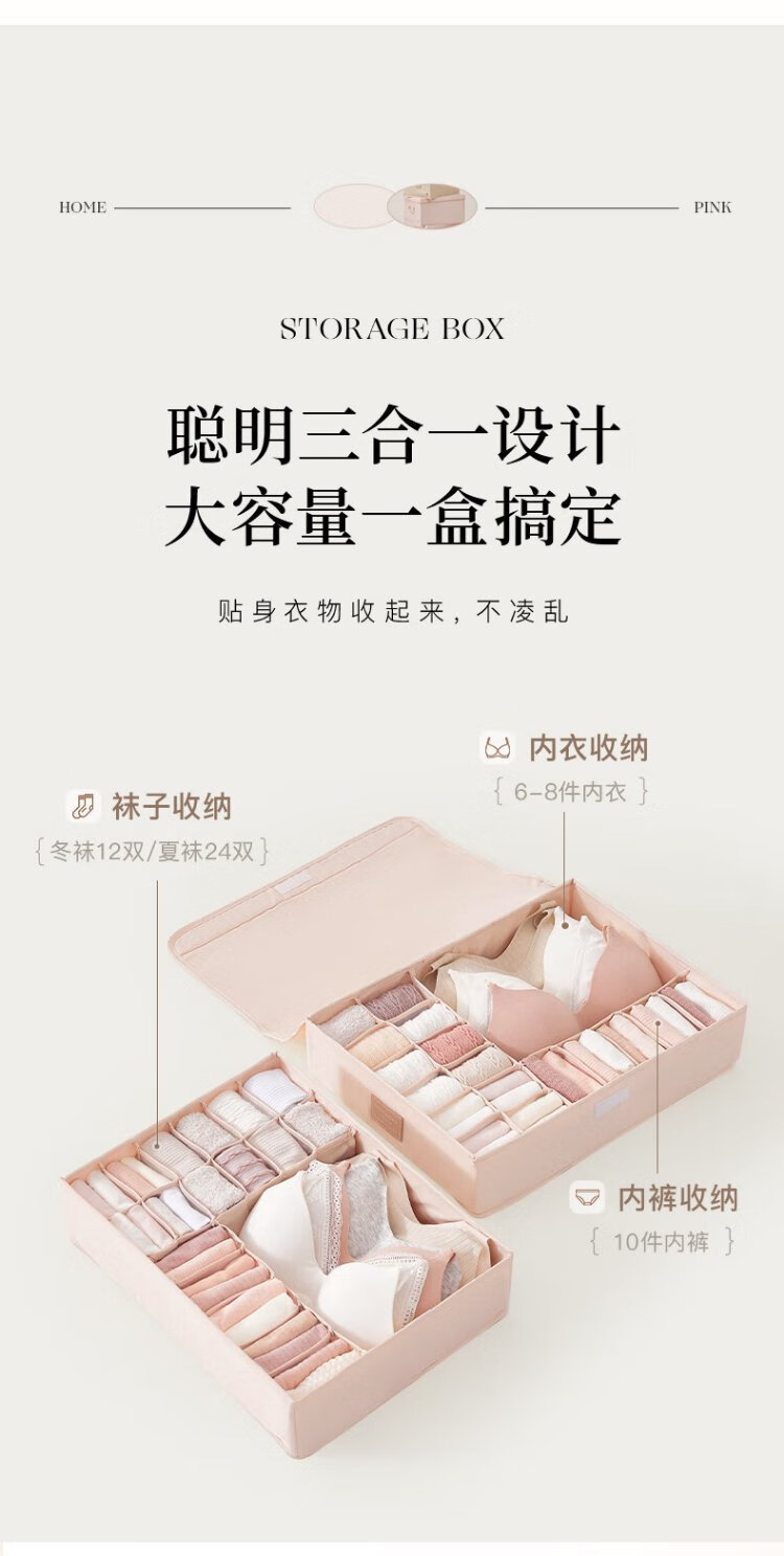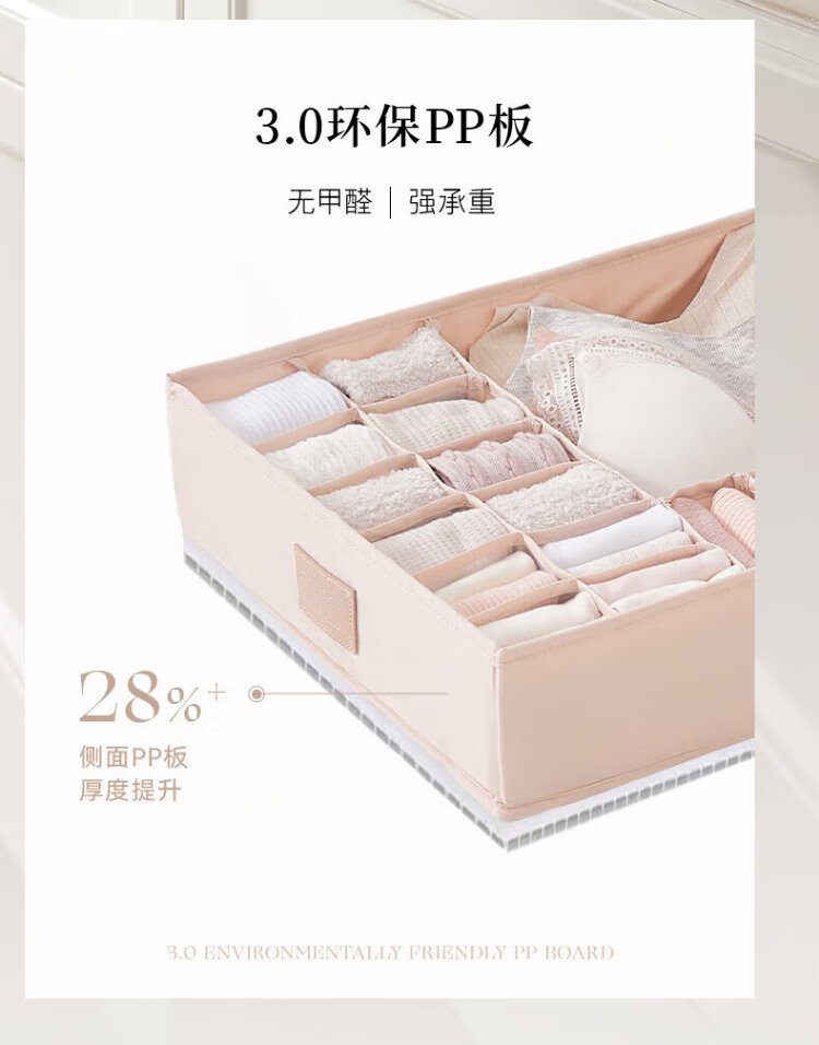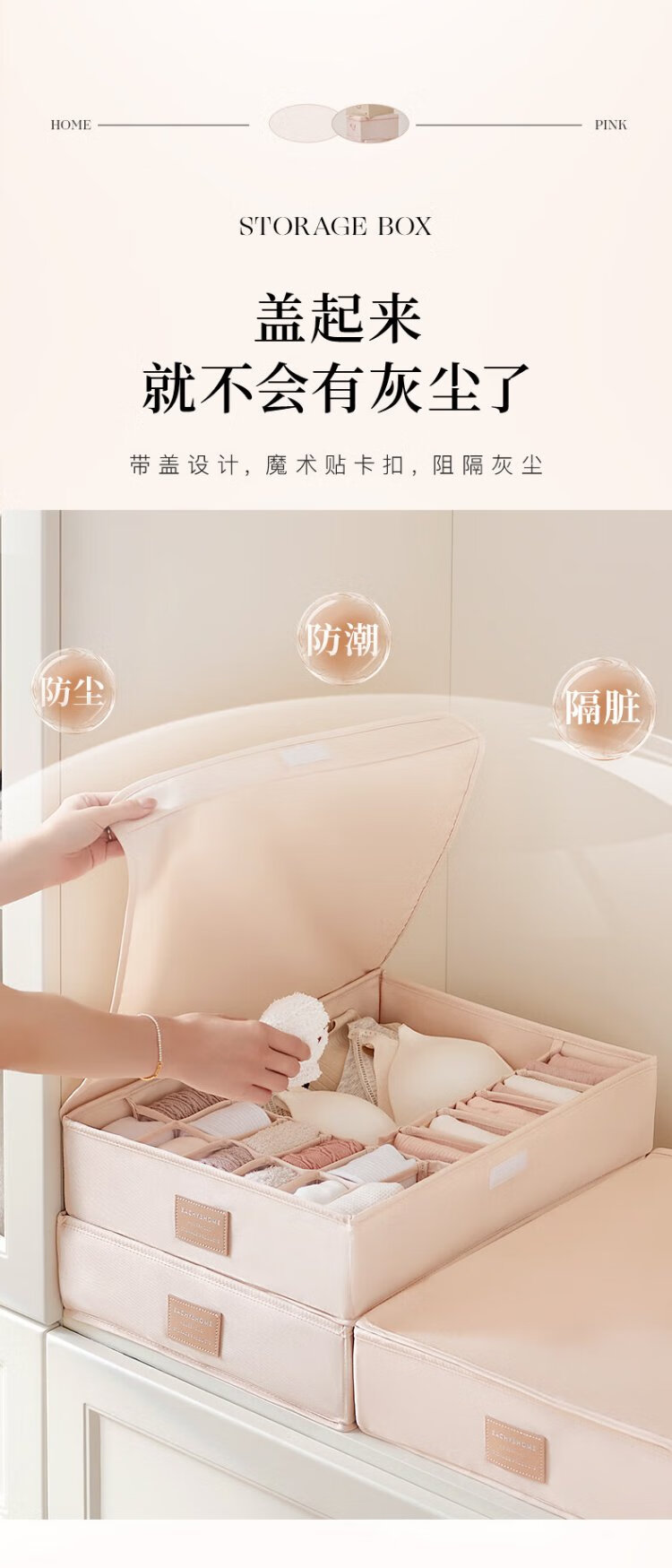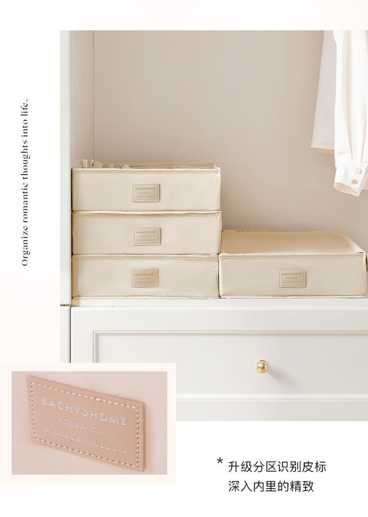 EACHY Underwear Storage Box Adjustable Drawer Storage Divided Sock Organizer Box Underwear Box-Almond Flour M