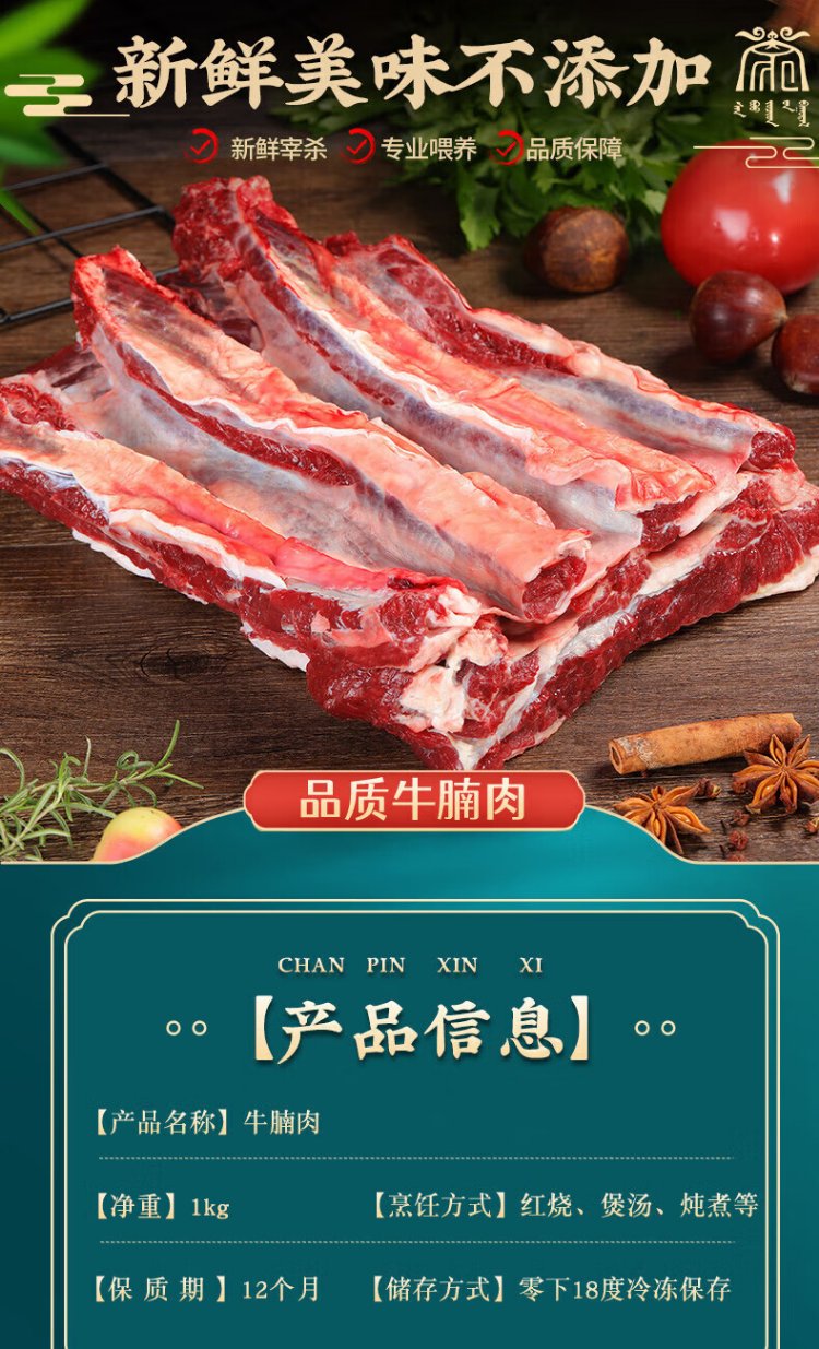 Baiding Inner Mongolia Beef Brisket 2Jin Jin is equal to 0.5kg Net Weight Fresh Yellow Beef Belly Red BBQ Hot Pot Ingredients No Water Injection