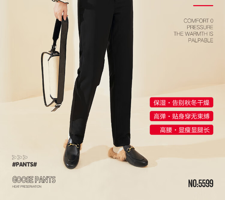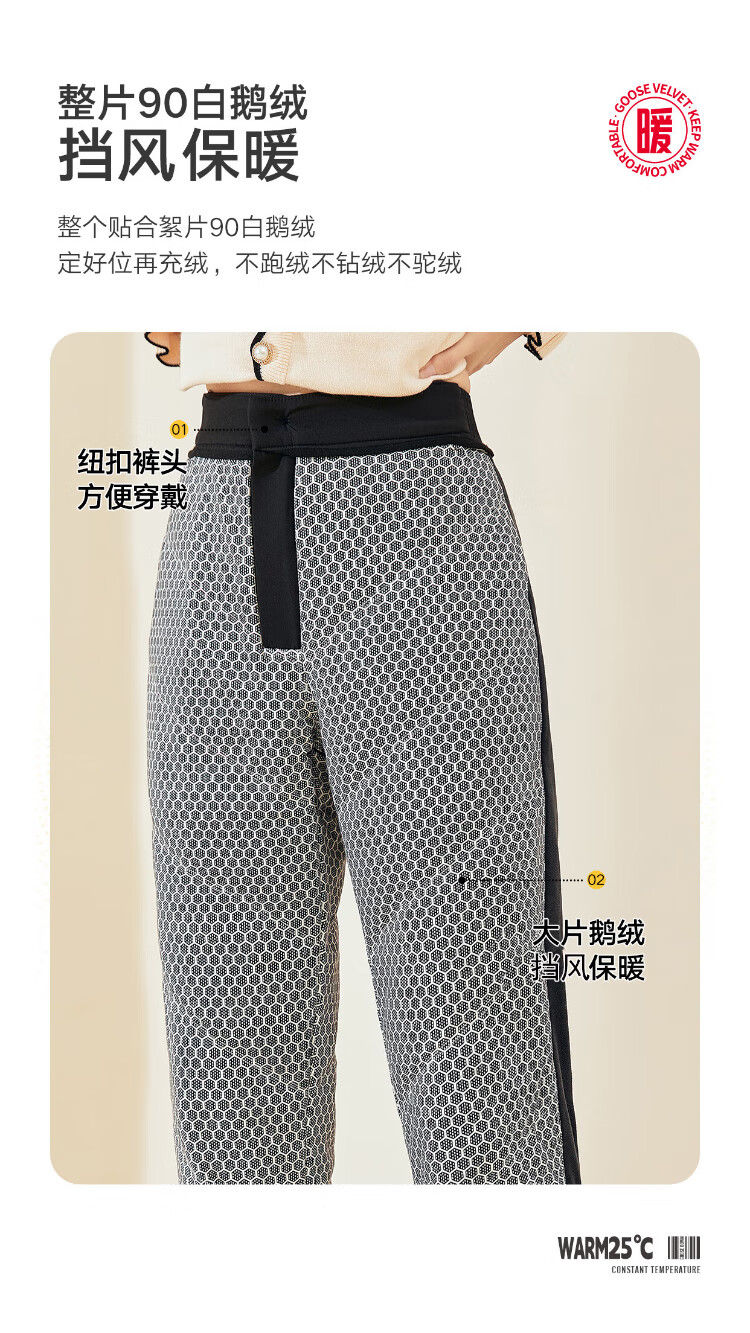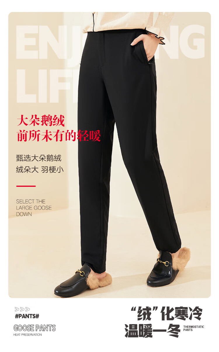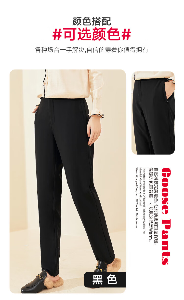 Langsha Down Pants Women's Outerwear Autumn and Winter Casual Suit Pants High Waist Plus Velvet Thickened Narrow Harem Small Foot White Goose Down Straight Leg Pants