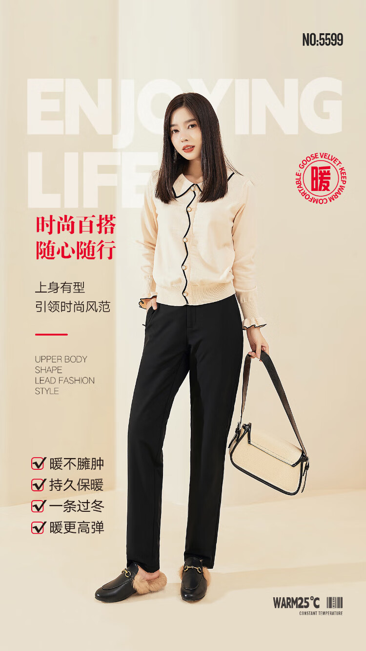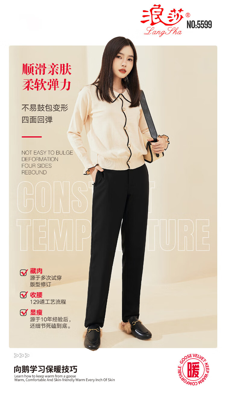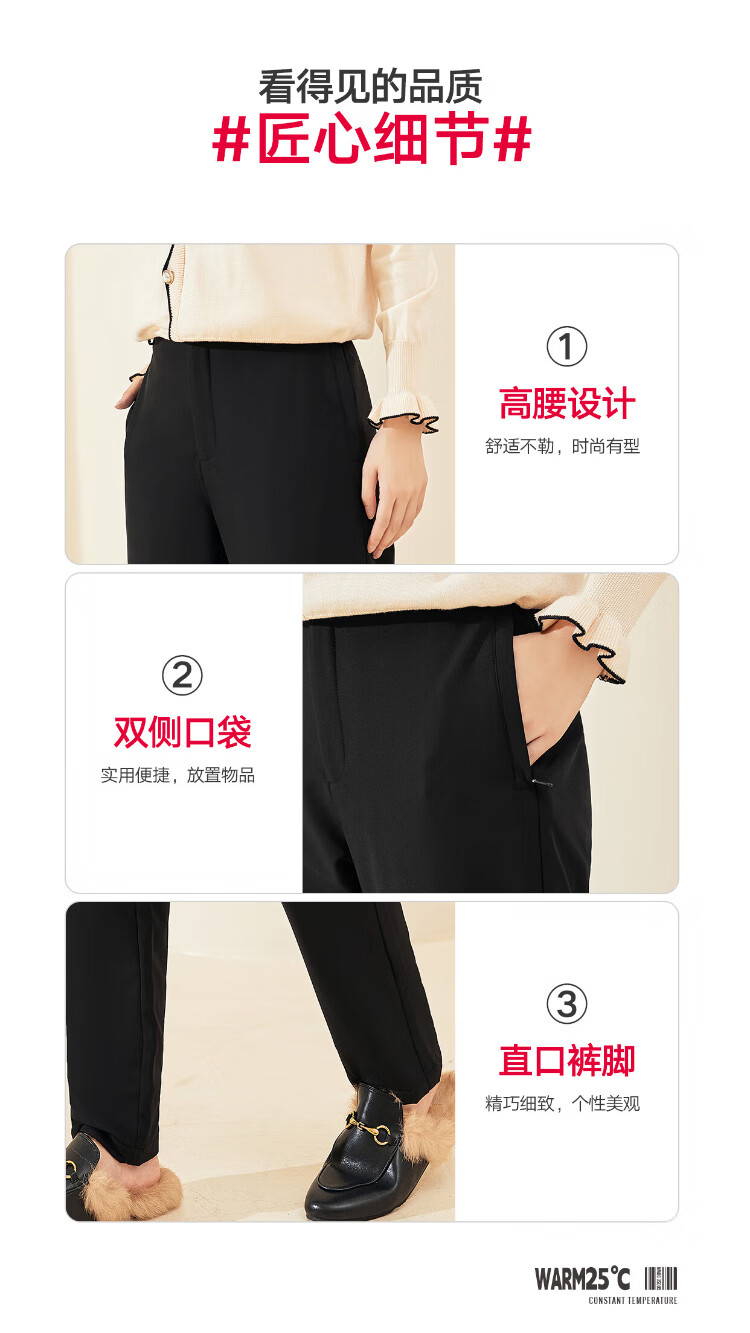 Langsha Down Pants Women's Outerwear Autumn and Winter Casual Suit Pants High Waist Plus Velvet Thickened Narrow Harem Small Foot White Goose Down Straight Leg Pants