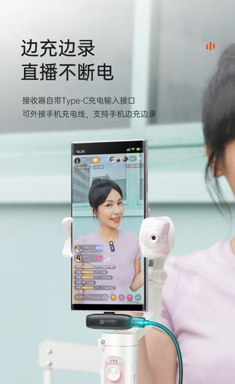 Hohem Mic-01 lavalier microphone wireless one-to-one type-c microphone radio noise reduction live broadcast mobile anchor short video recording Android iphone Apple 16 camera