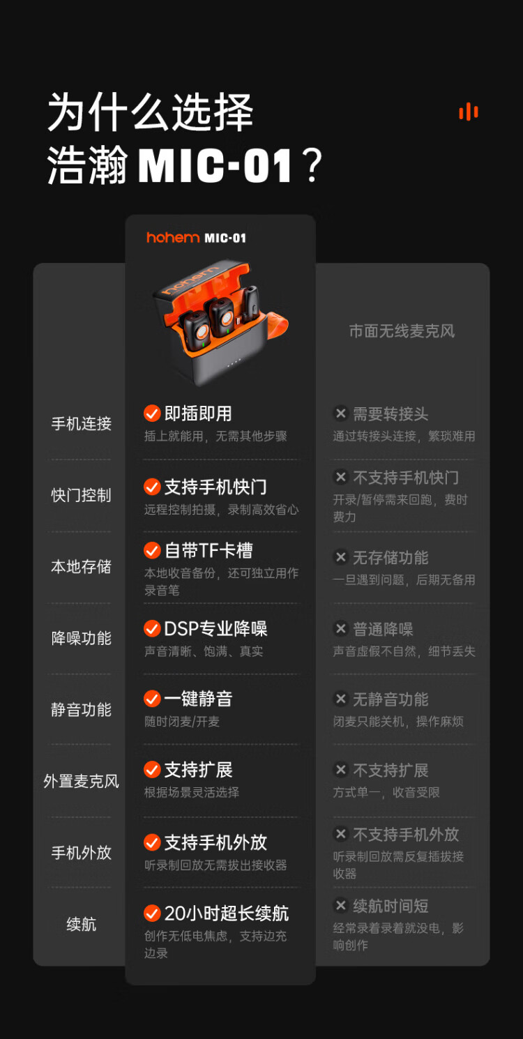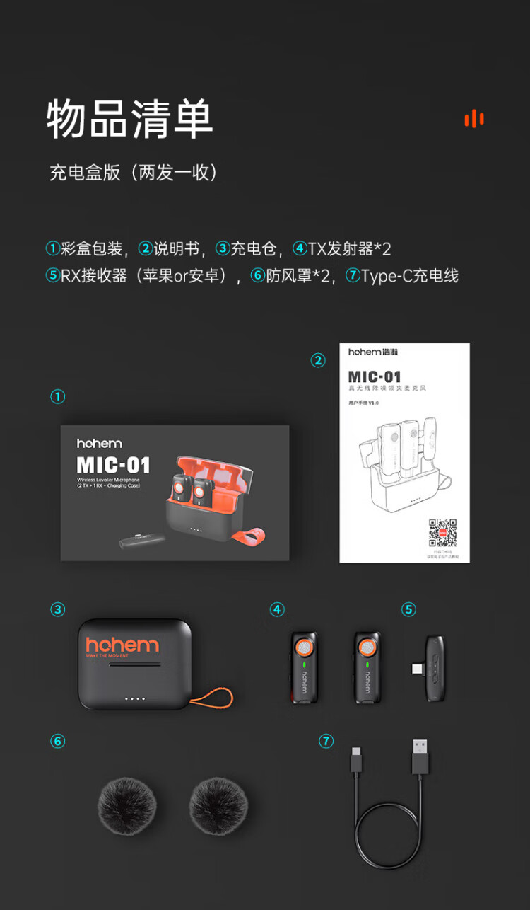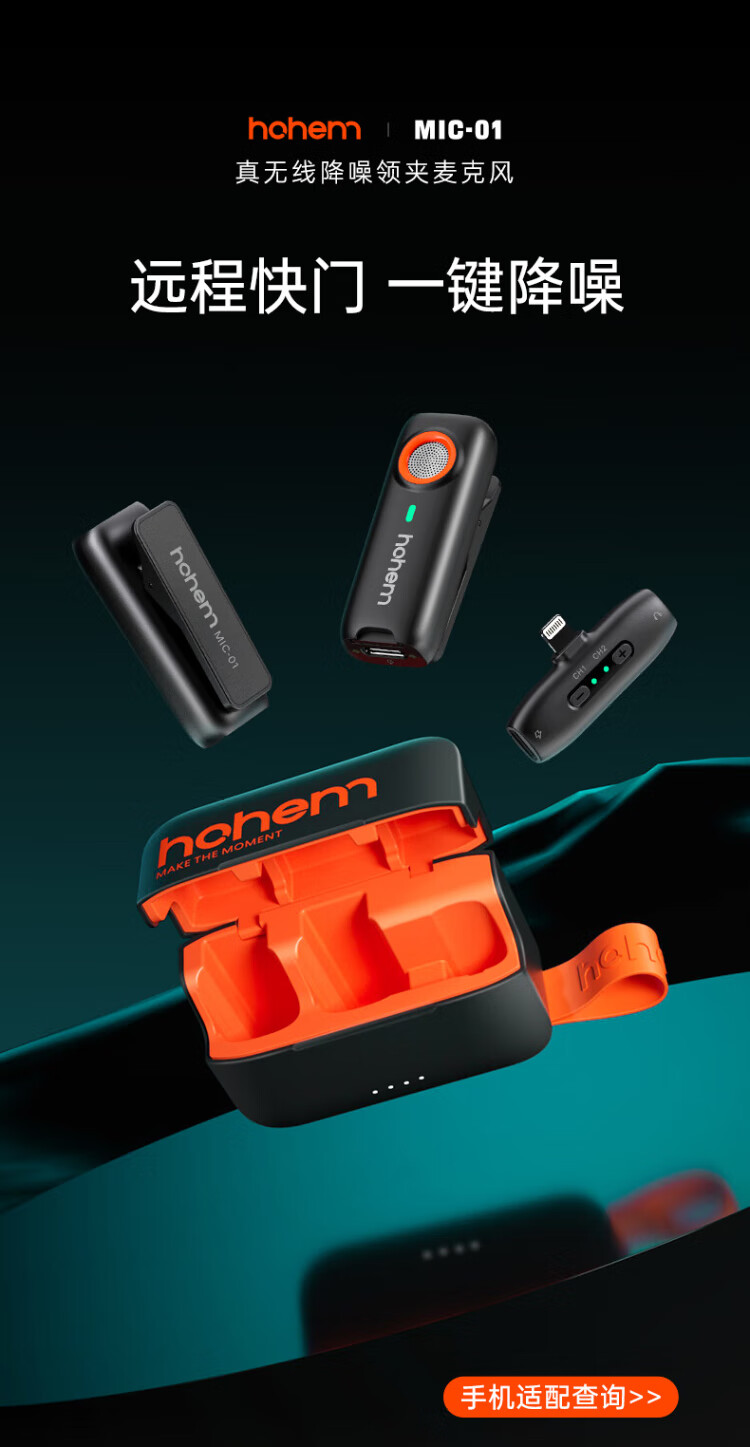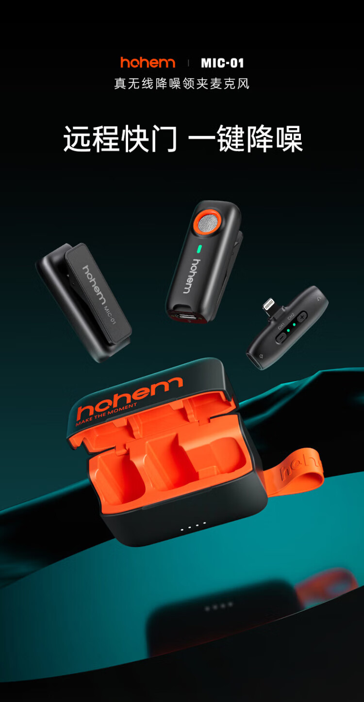 Hohem Mic01 wireless microphone lavalier radio microphone one-to-two live broadcast microphone explainer equipment anchor Douyin short video camera recording Apple outdoor interview Apple 14