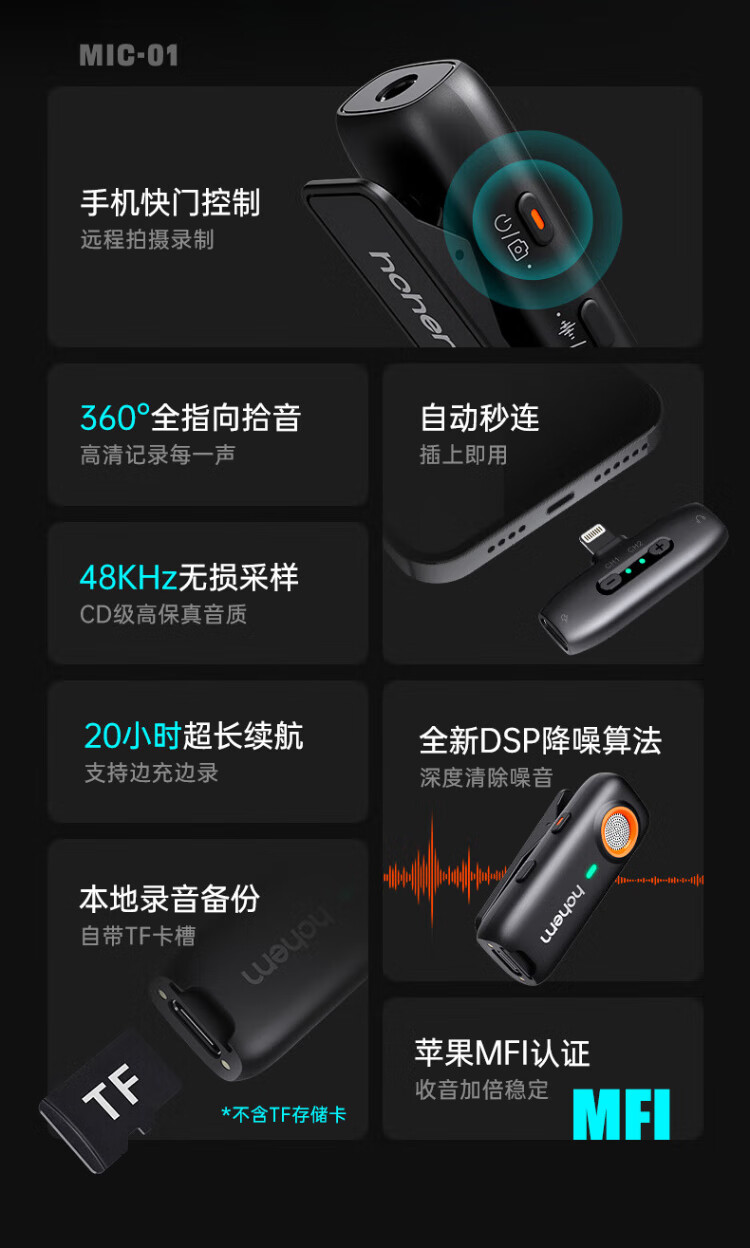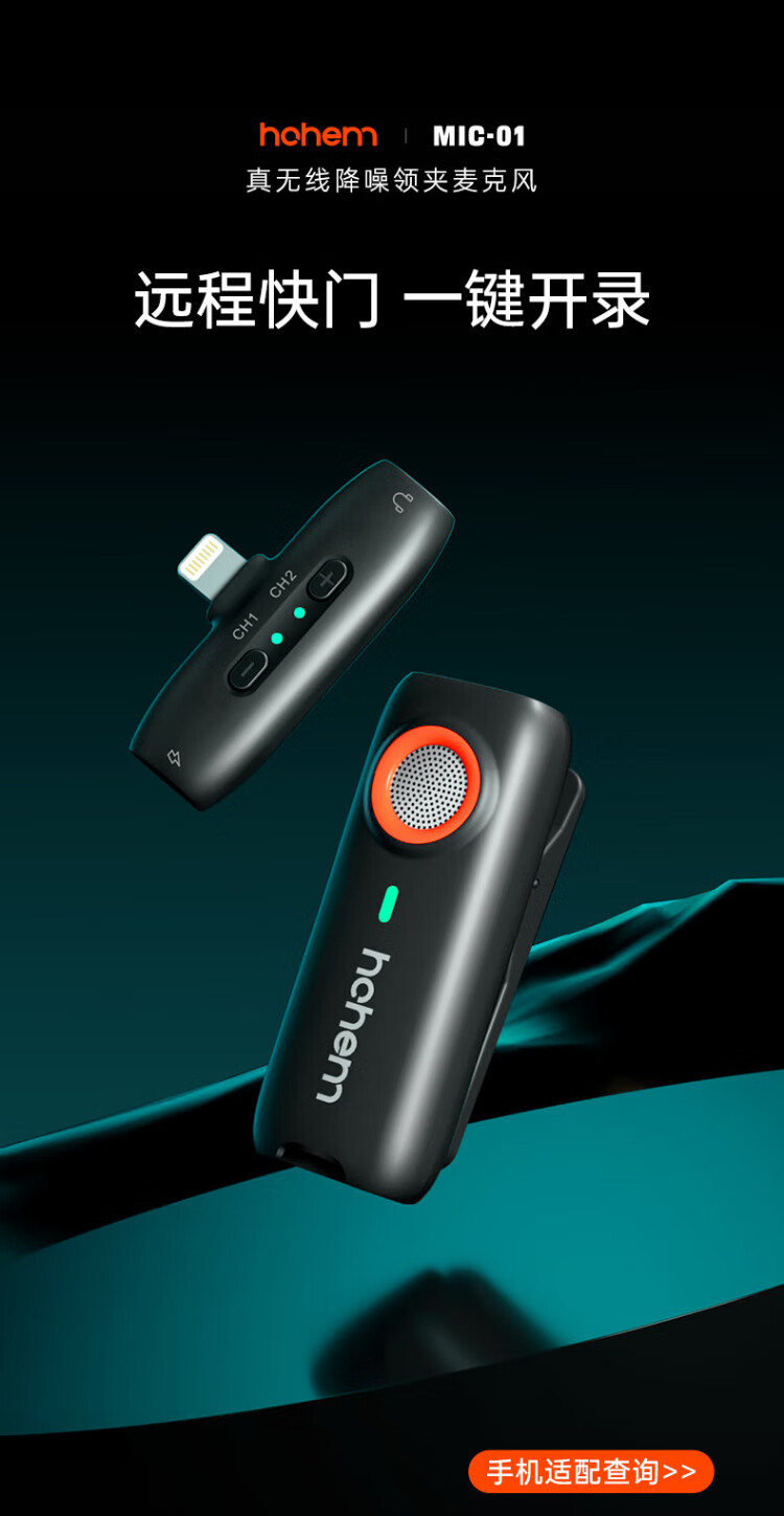 Hohem Mic-01 wireless lavalier microphone one-to-one Apple live broadcast microphone mobile phone equipment anchor short video SLR camera recording monitoring ear return