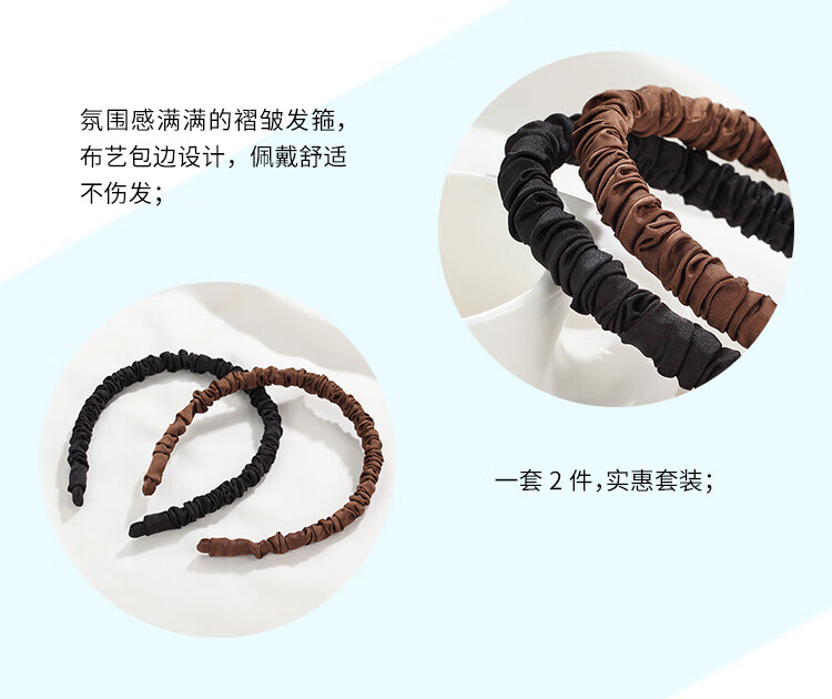 Chimera (CHIMERA) 2-piece set of elegant and simple pleated headbands, feminine headbands, pressed hair headbands, birthday gifts for girls