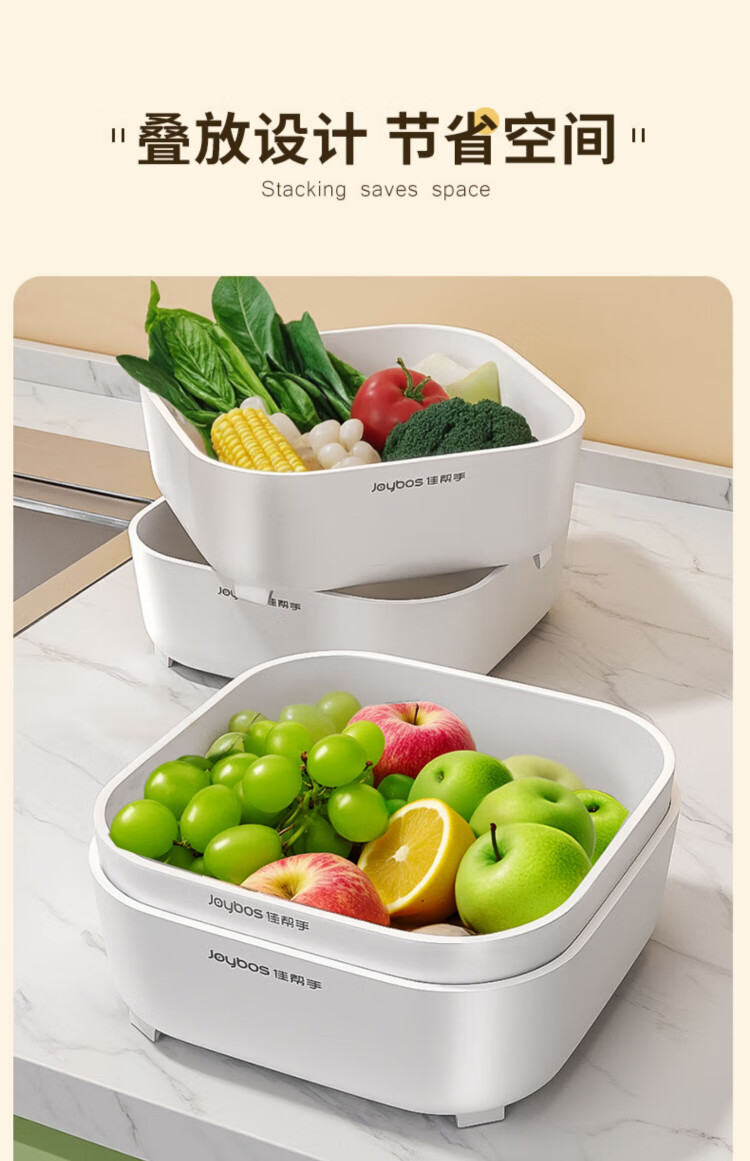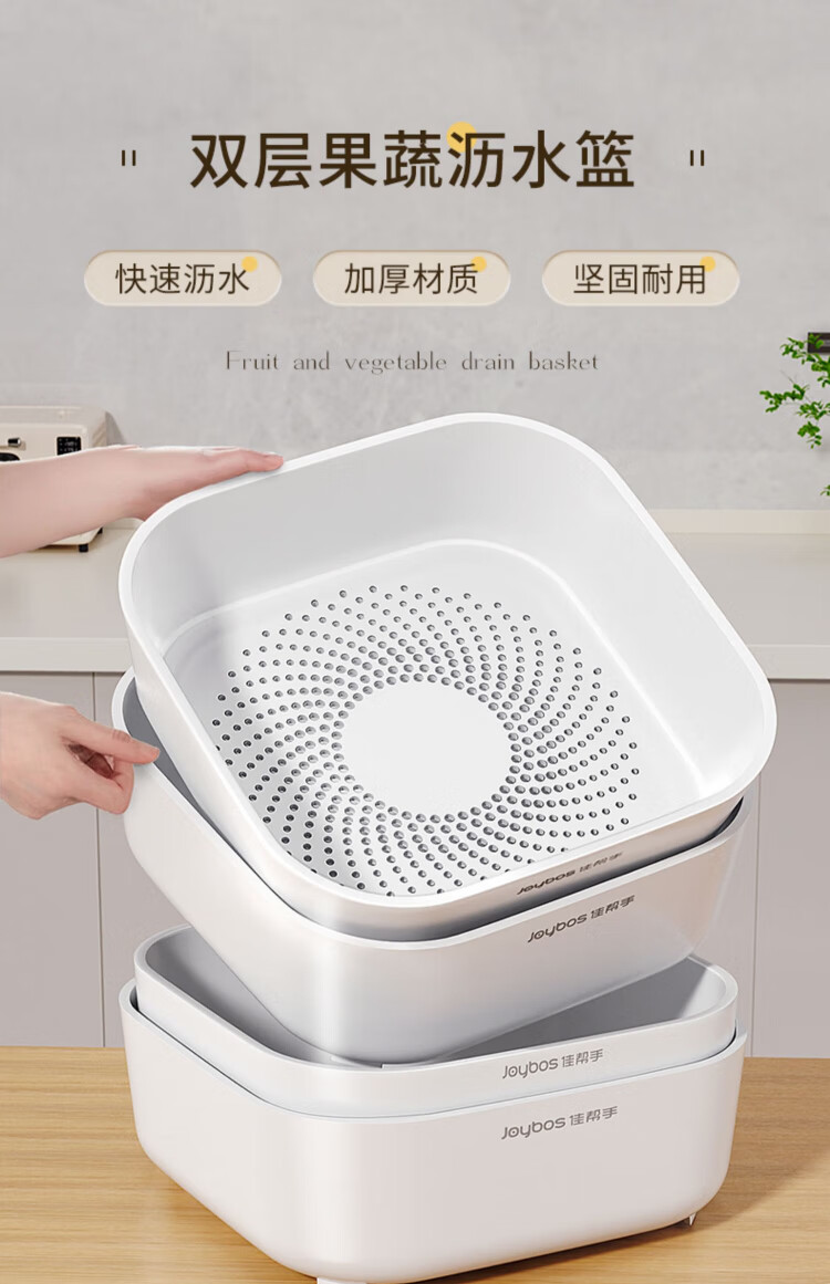 Jia helper vegetable washing basin double-layer drain basket washing fruit vegetable washing basket rice basin household hot pot preparation water filter artifact 4 pack