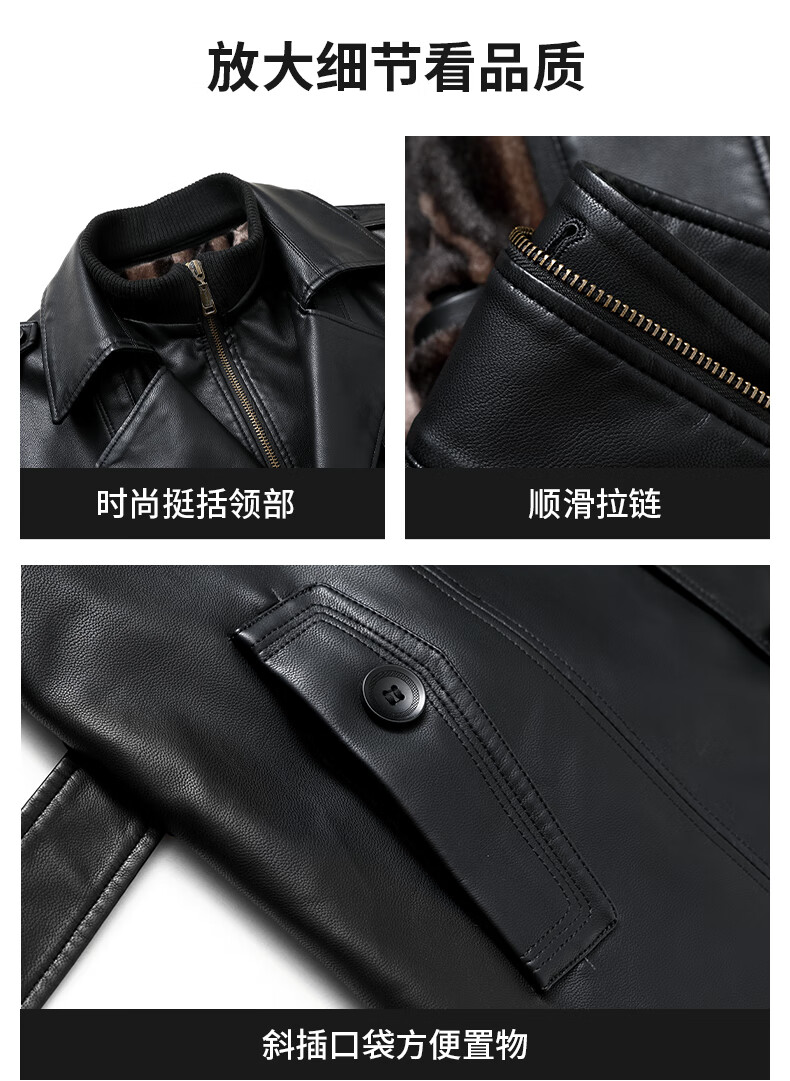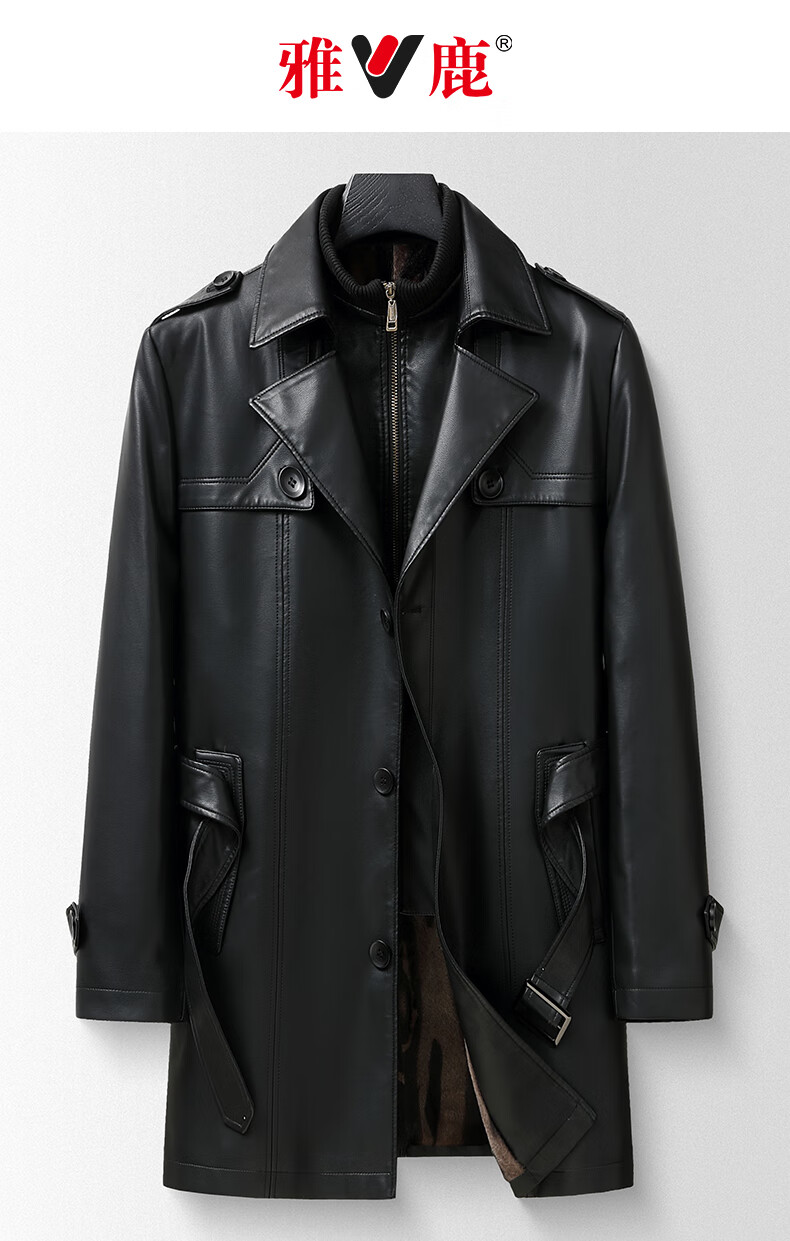 Yalu mid-length leather men's jacket fake two-piece autumn and winter business casual leather jacket middle-aged men's dad's jacket