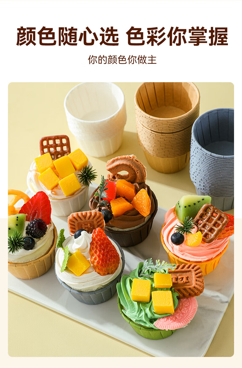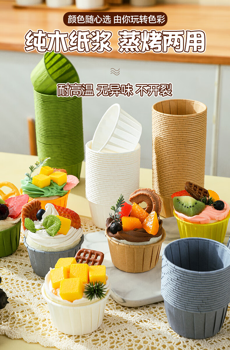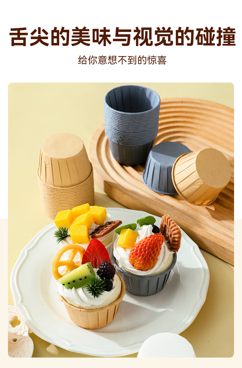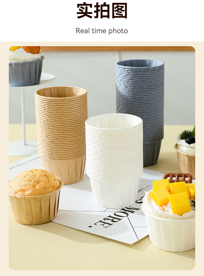 Baked Leshi cake paper cup roll cup 50 pieces wood color air fryer special muffin paper cup high temperature resistant baking tools