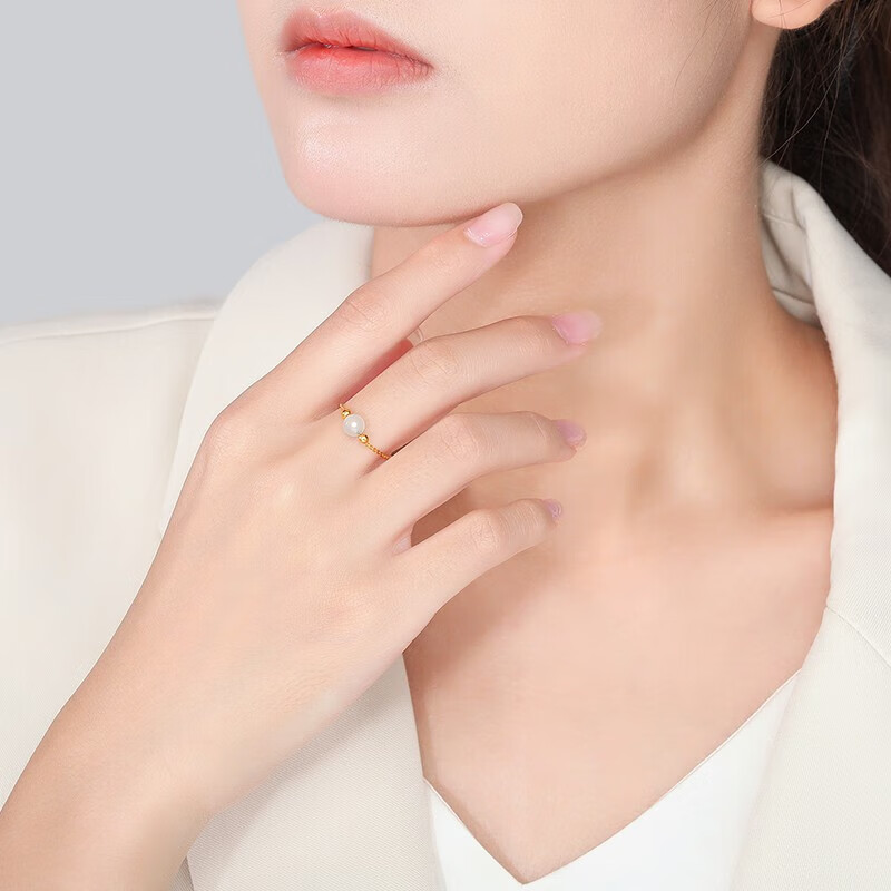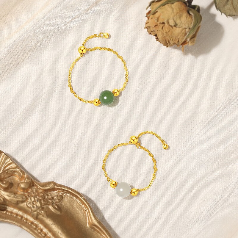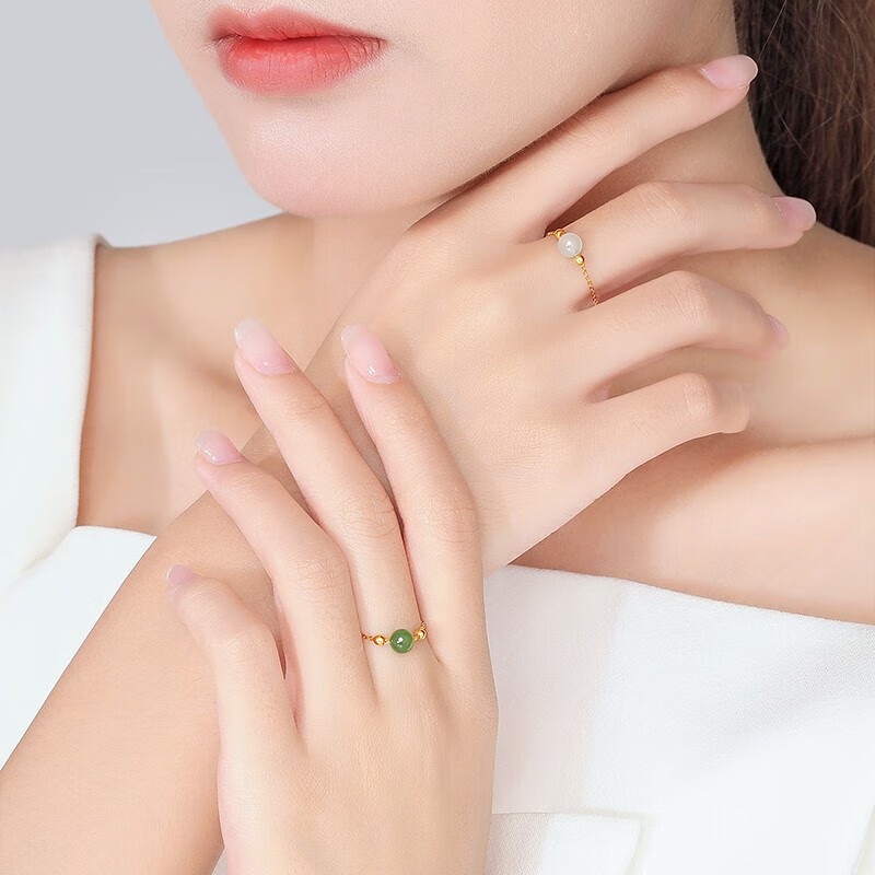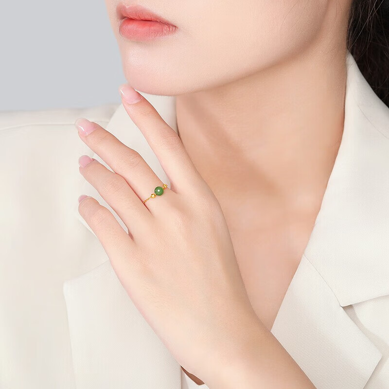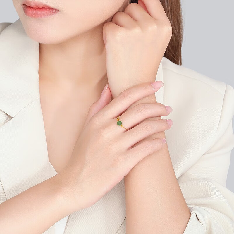 Chao Acer 18K Gold Hetian Jade Ring for Women Biying Ningzhi SRK32800002 Biying-Jasper Birthday Gift