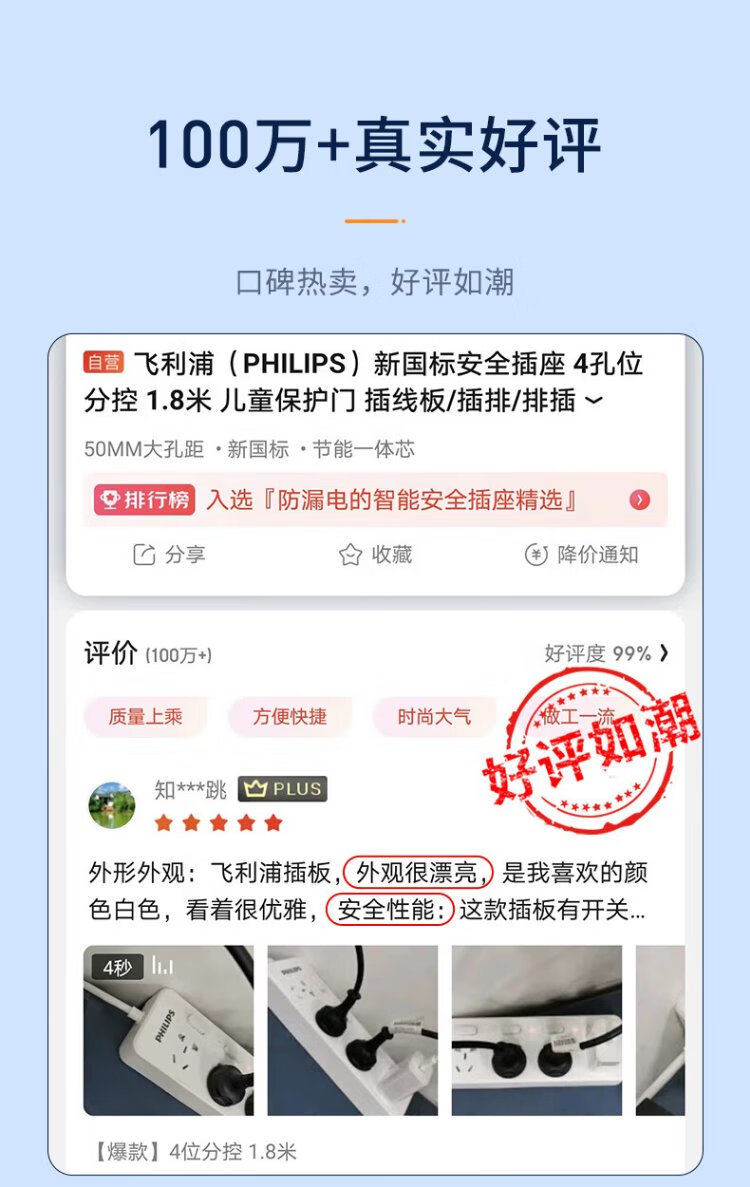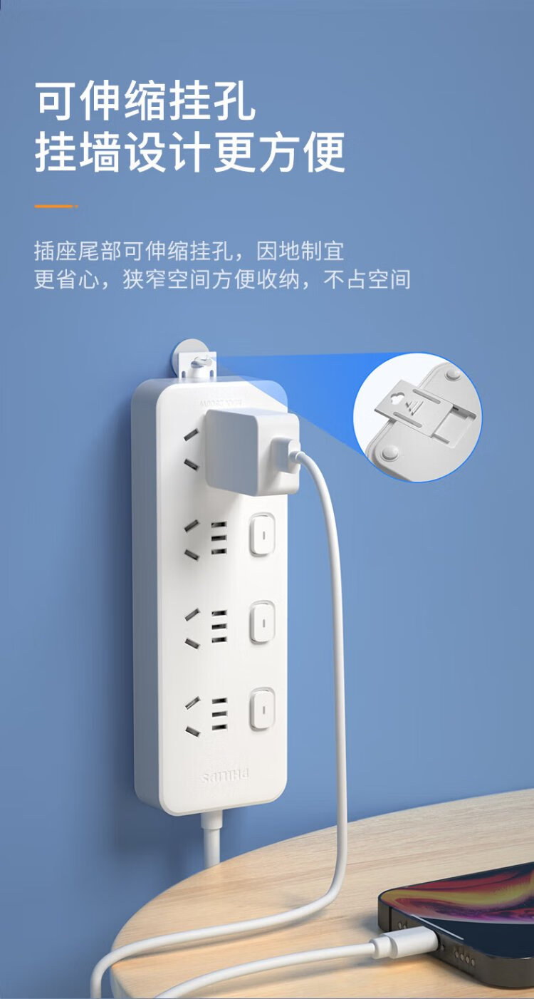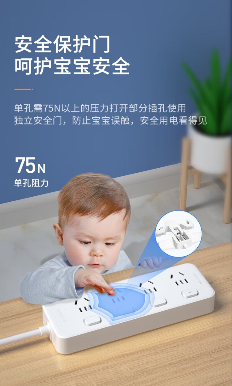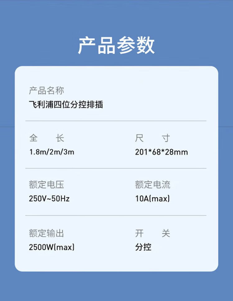 Philips (PHILIPS) new national standard safety plug strip socket 2 meters branch control 4-position plug strip branch control socket dormitory plug board/row plug/terminal board/pull line board independent switch 3140WP