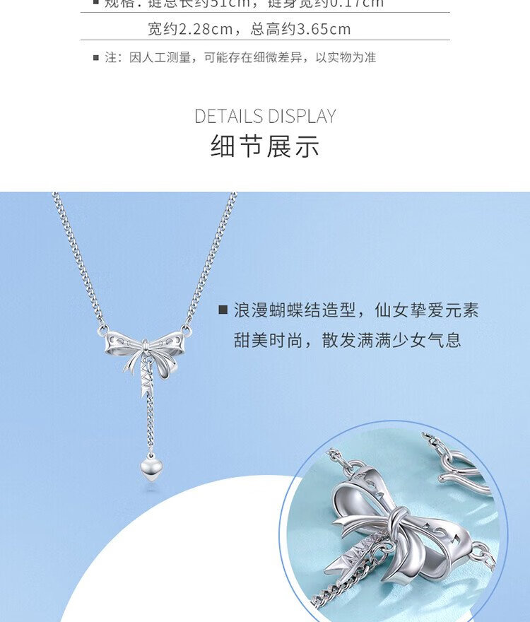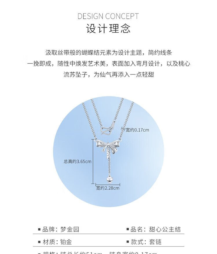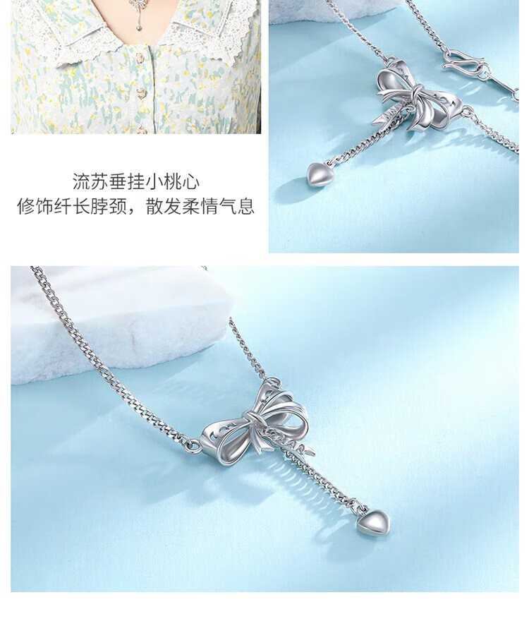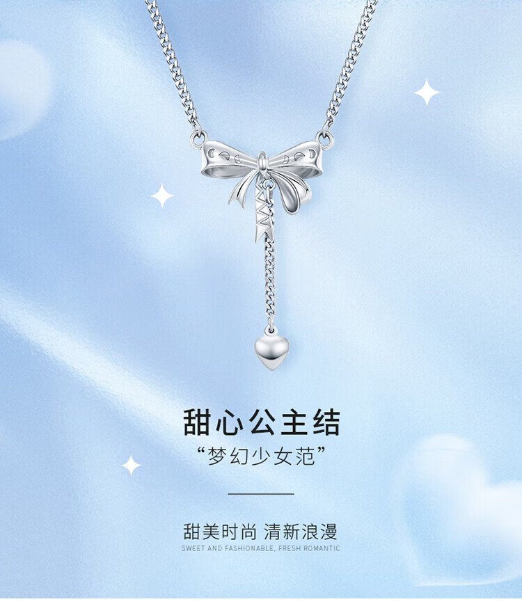 Mengjinyuan platinum necklace sweetheart bow platinum set chain romantic heart clavicle chain women's gift