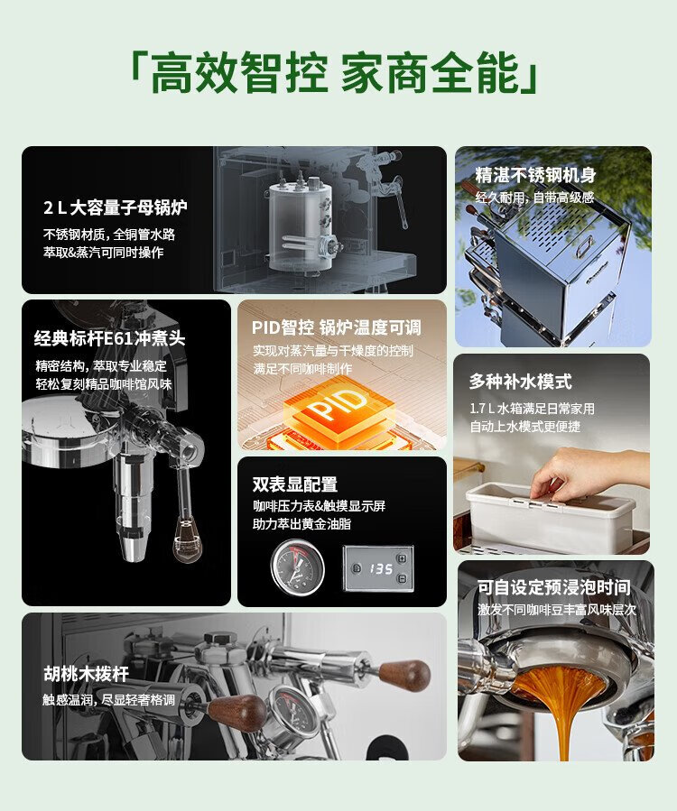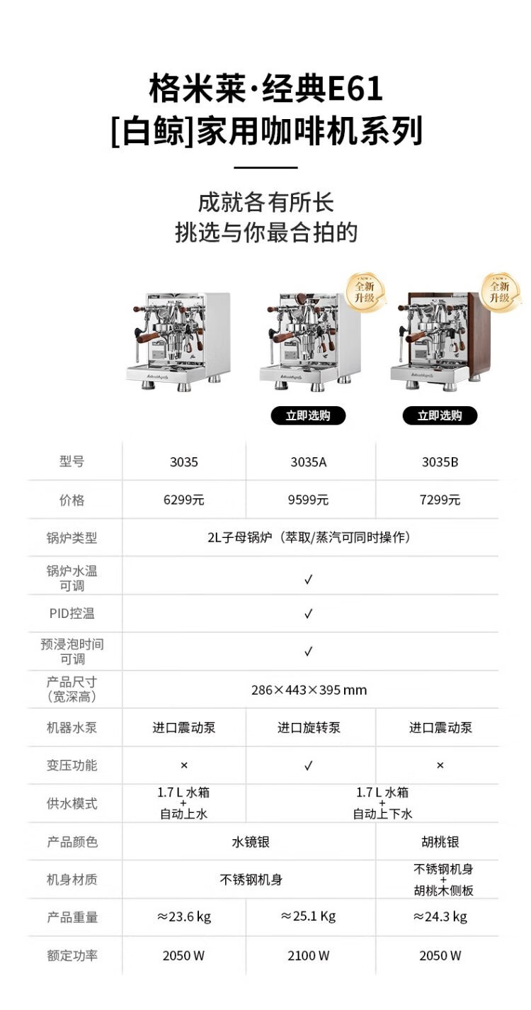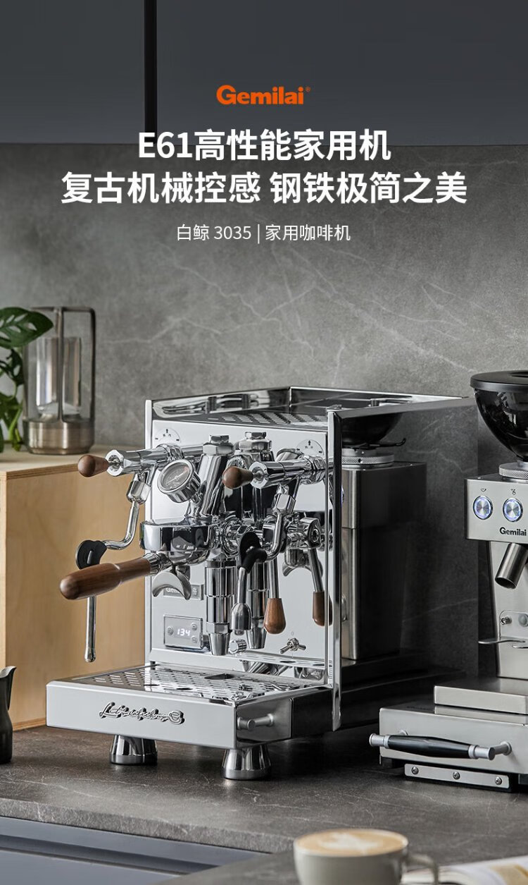 GEMILAI government subsidy Beluga semi-automatic coffee machine E61 brewing head high-performance household commercial boiler G3035 stainless steel