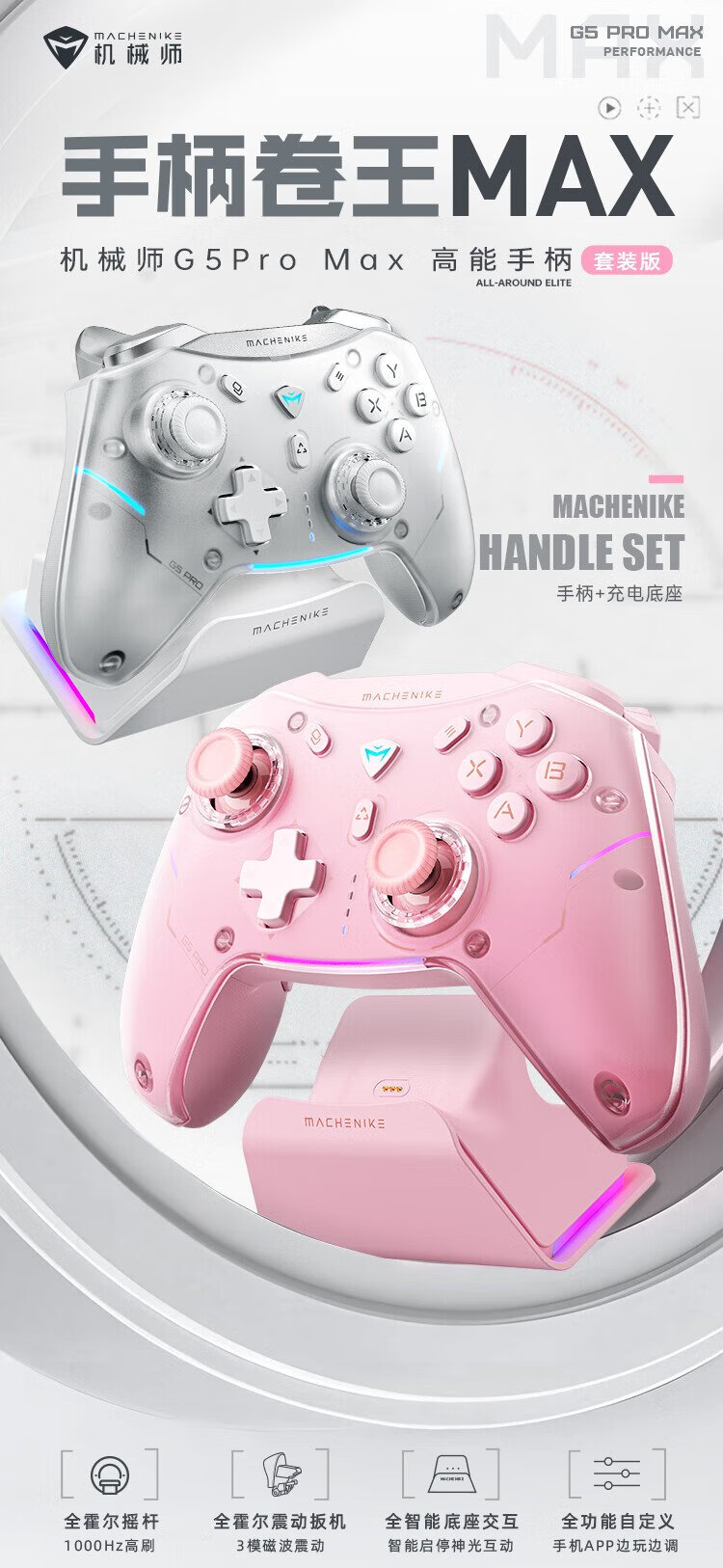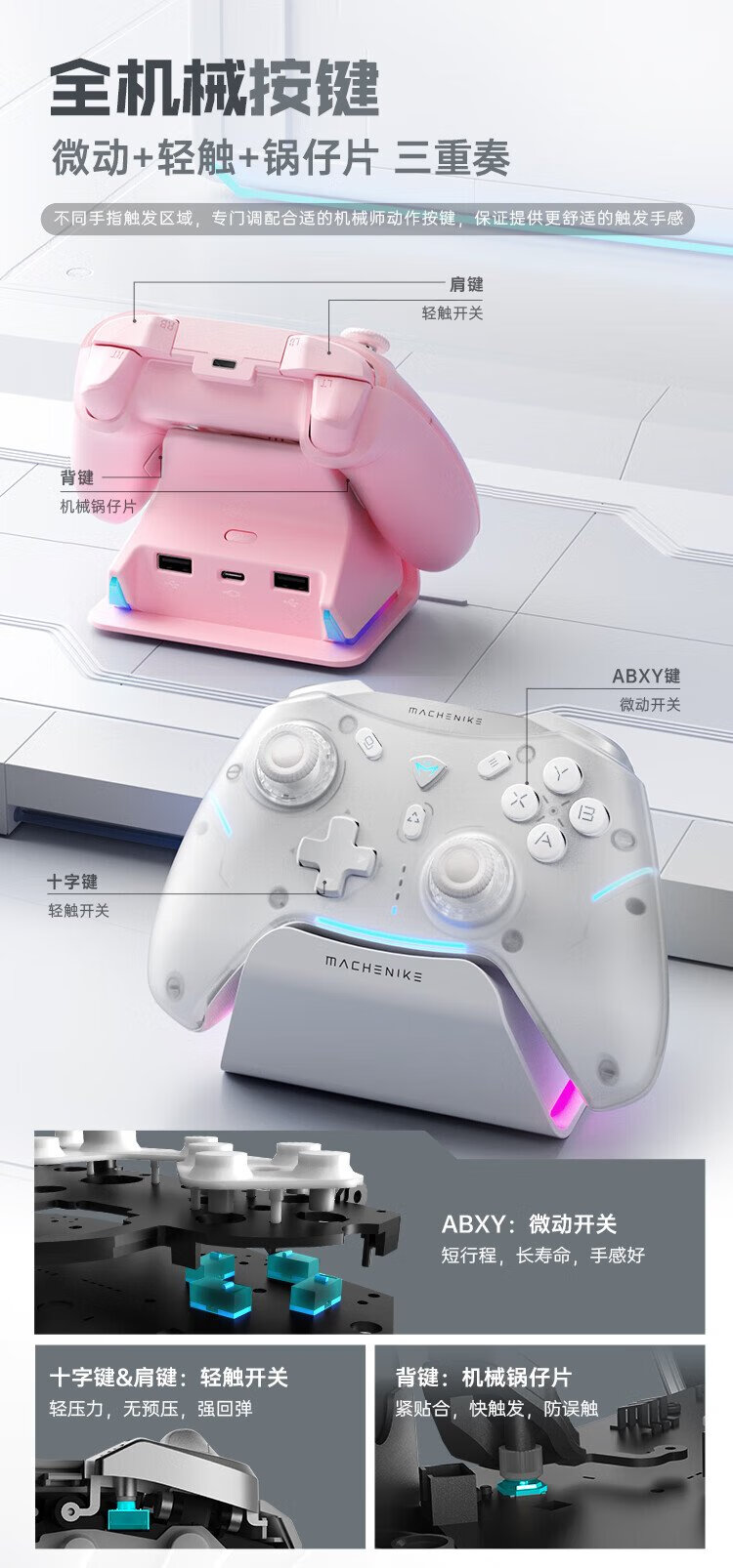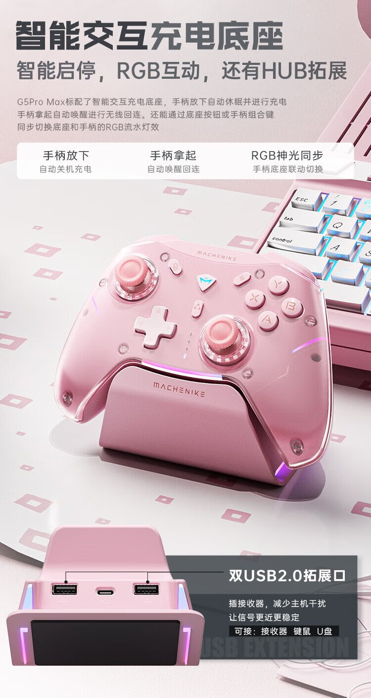 Mechanic G5proMAX wireless Bluetooth game controller switch pro xbox controller wired computer PC mobile phone NS steam controller-including charging base-pink