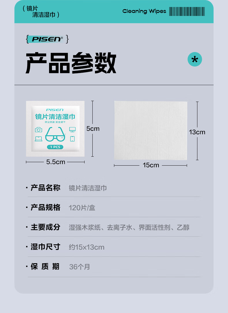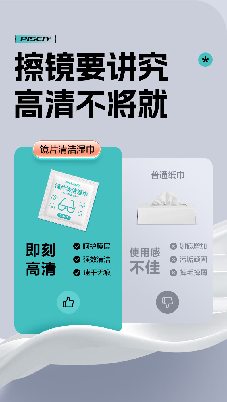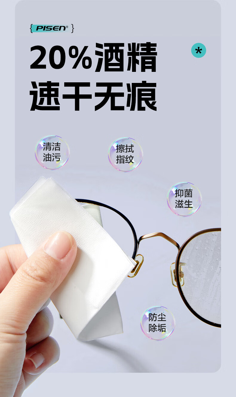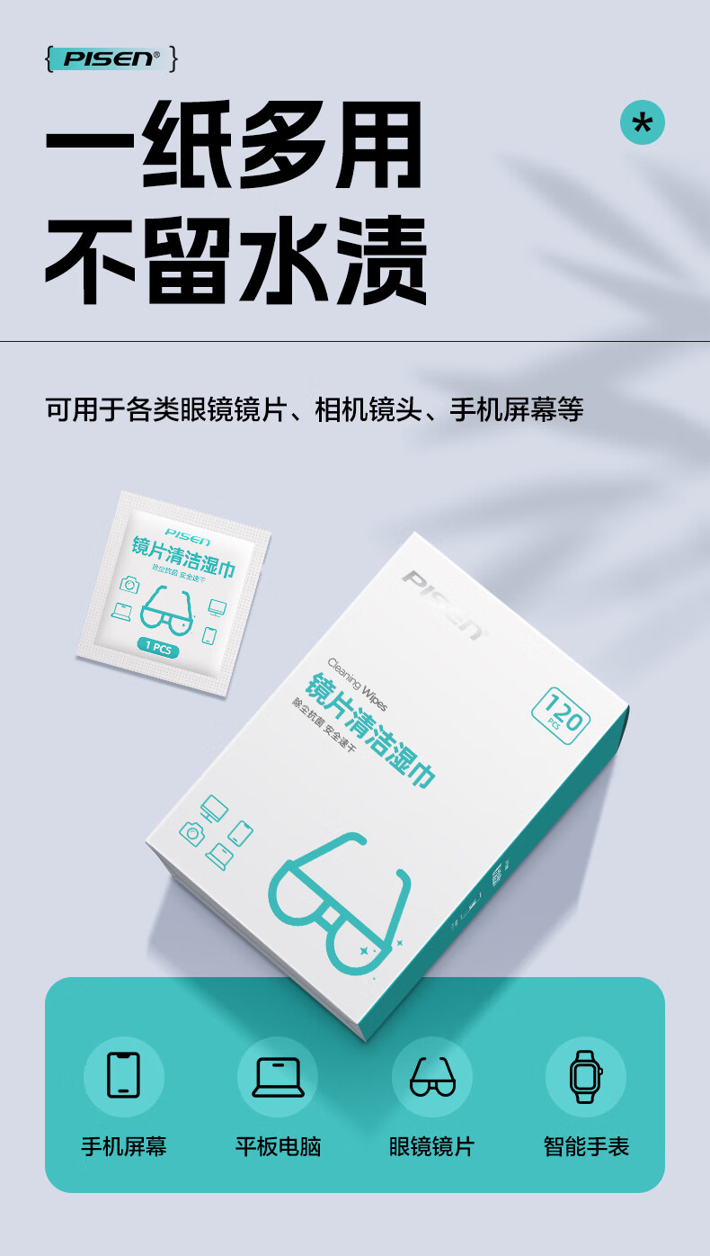 PISEN Pinsheng recommended by Guoping, glasses cleaning, lens cleaning, screen cleaning, cell phone cleaning, camera cleaning, 120 pieces of extra thickened wipes