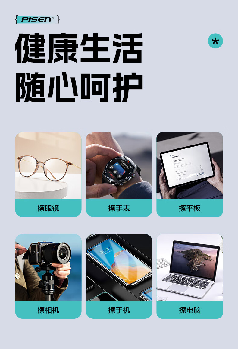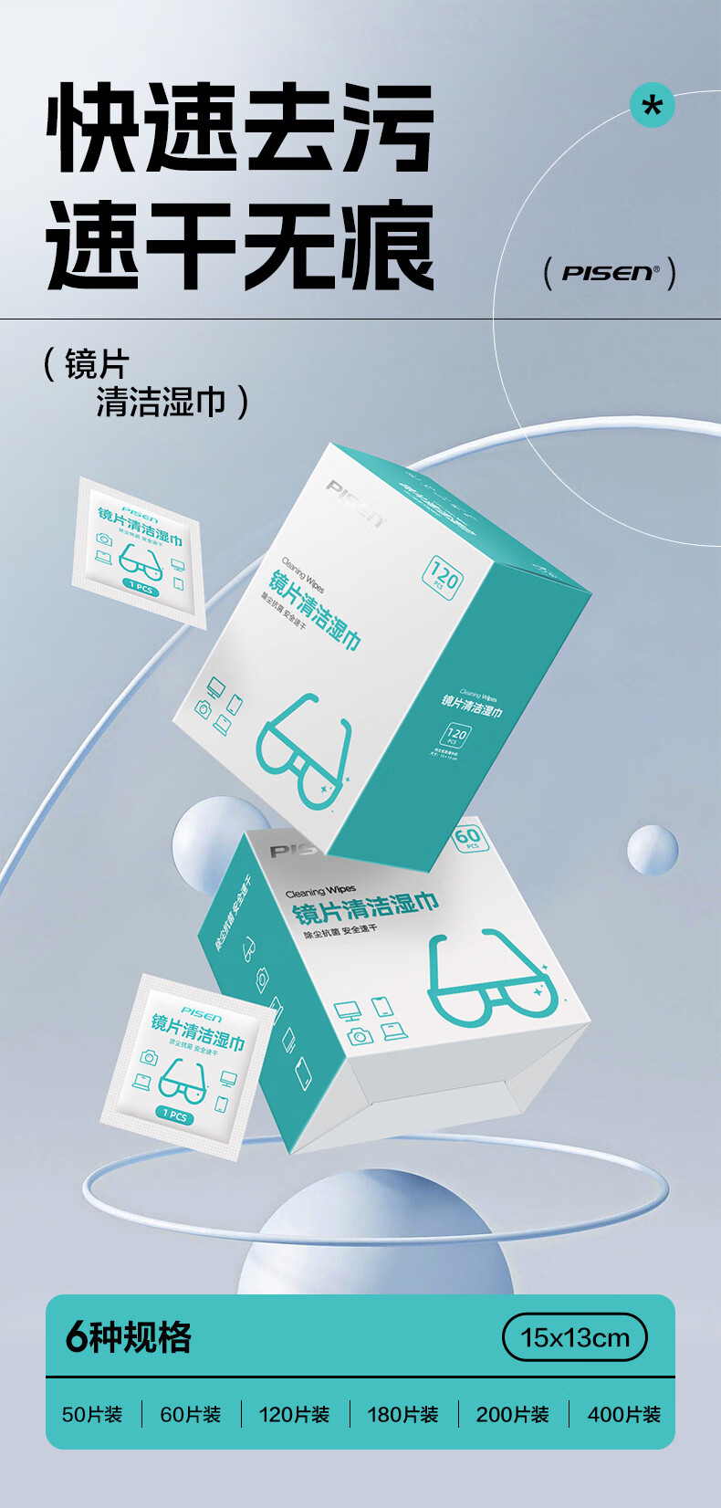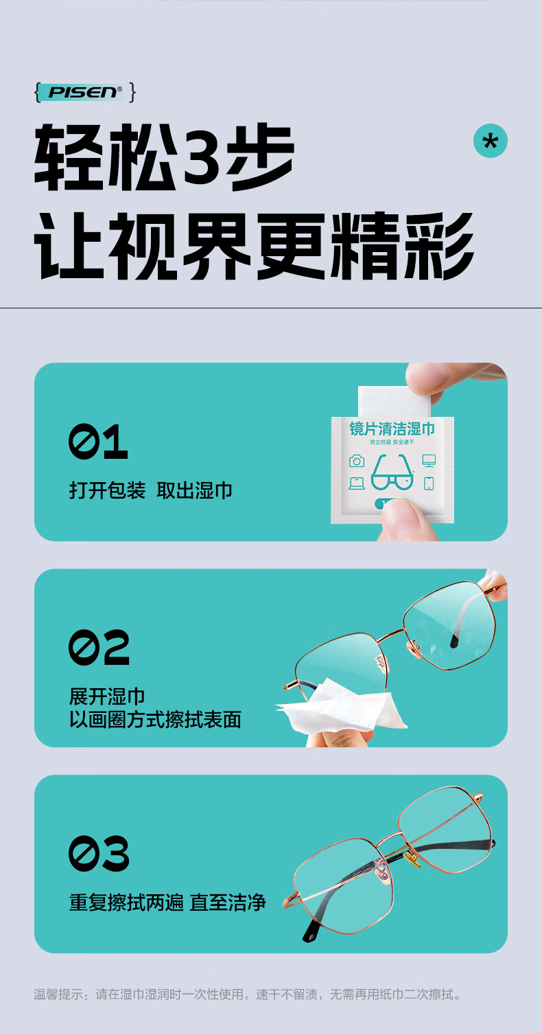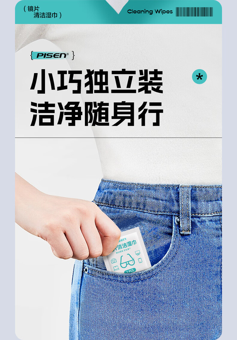 PISEN Pinsheng recommended by Guoping, glasses cleaning, lens cleaning, screen cleaning, cell phone cleaning, camera cleaning, 120 pieces of extra thickened wipes