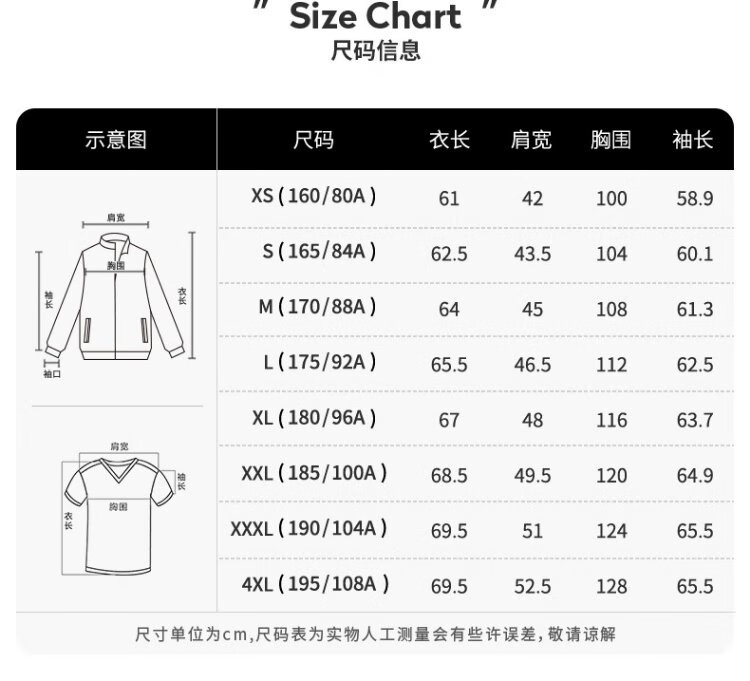 China (cm) 165 / 88-90 170 / 96-98 175 / 108-110 180 / 118-122 185 / 126-130