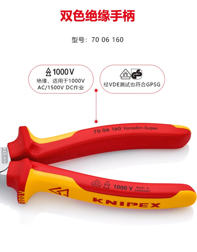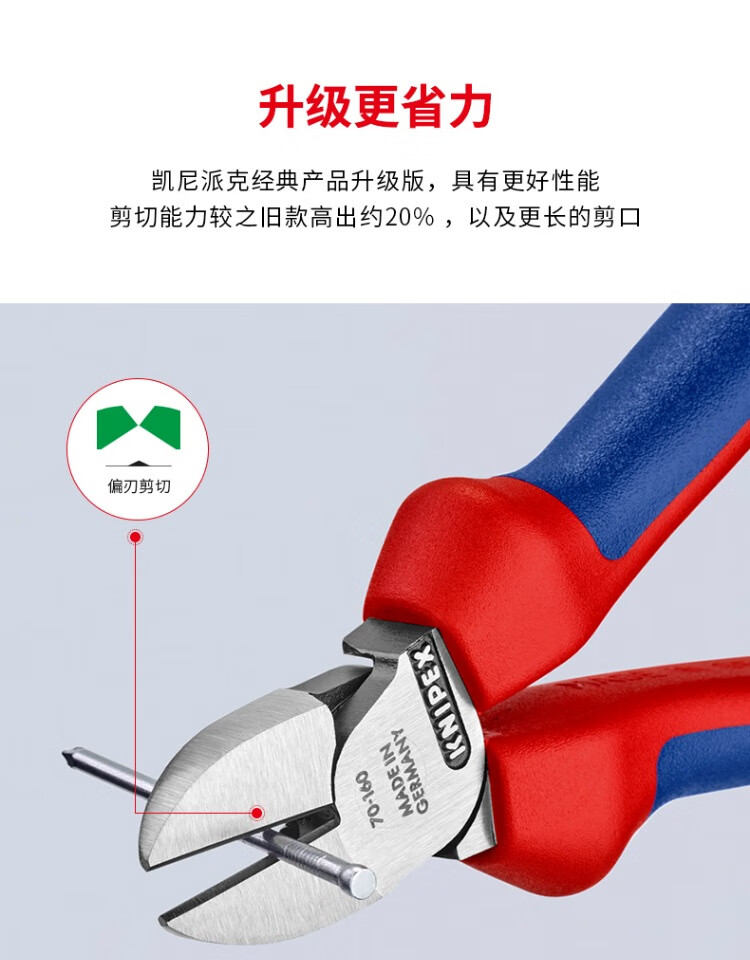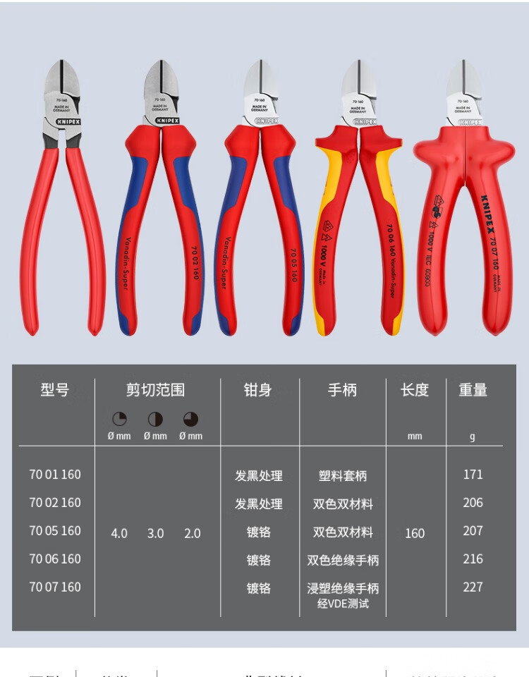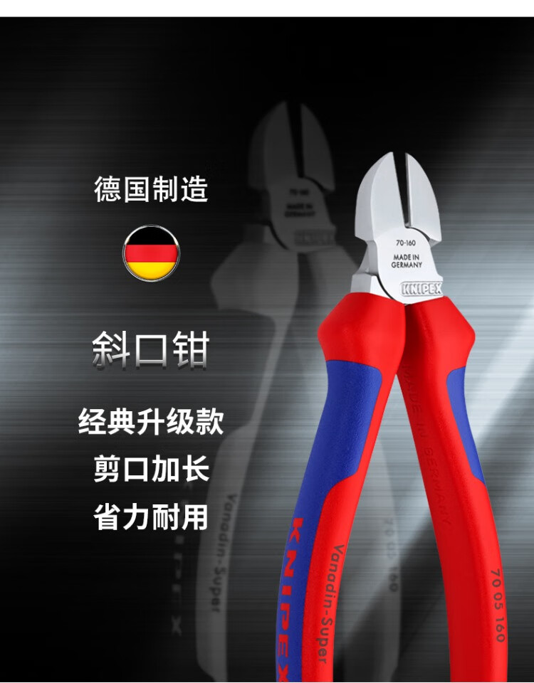 KNIPEX 70 06 160 160mm diagonal pliers 6-inch upgraded electrician wire trimmer offset pliers labor-saving diagonal pliers