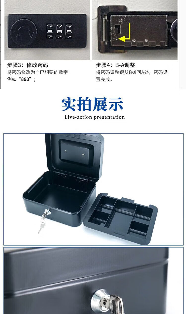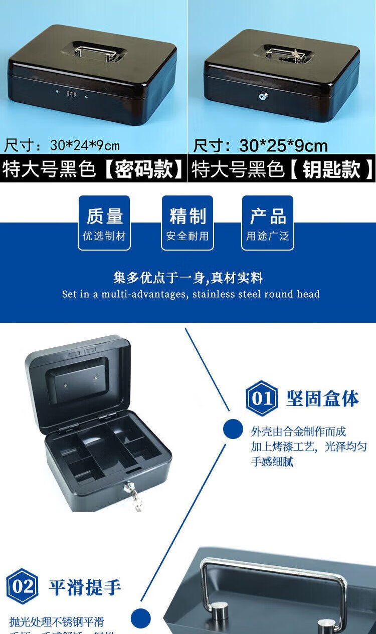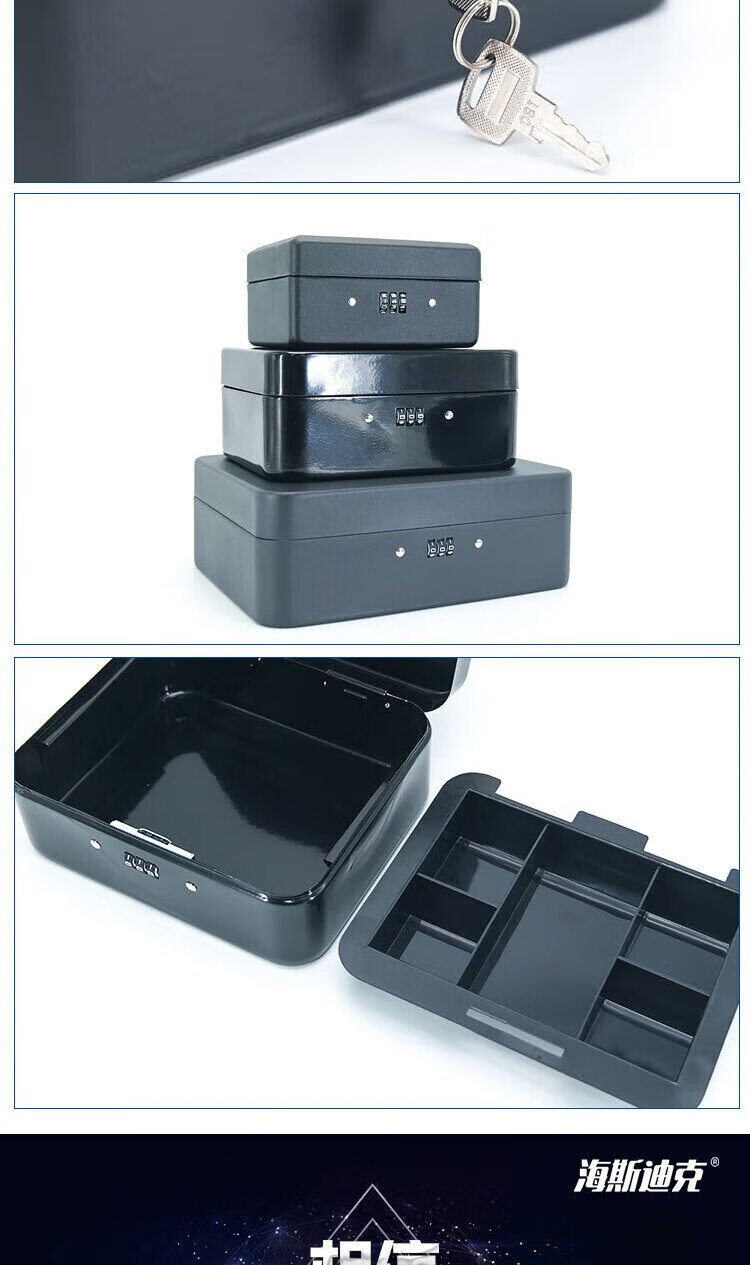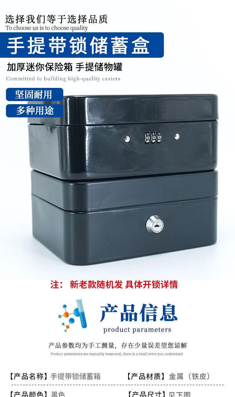 Hasdick portable cashier box with lock, savings box, safe, tool storage box, password black 20*16*9cm