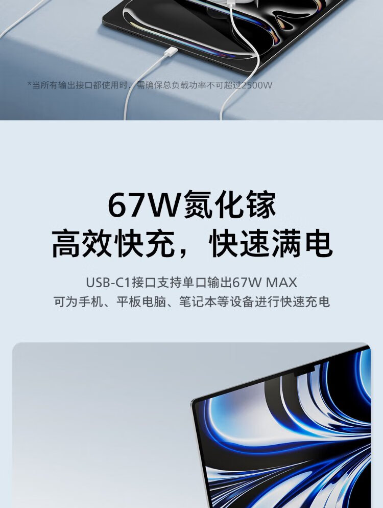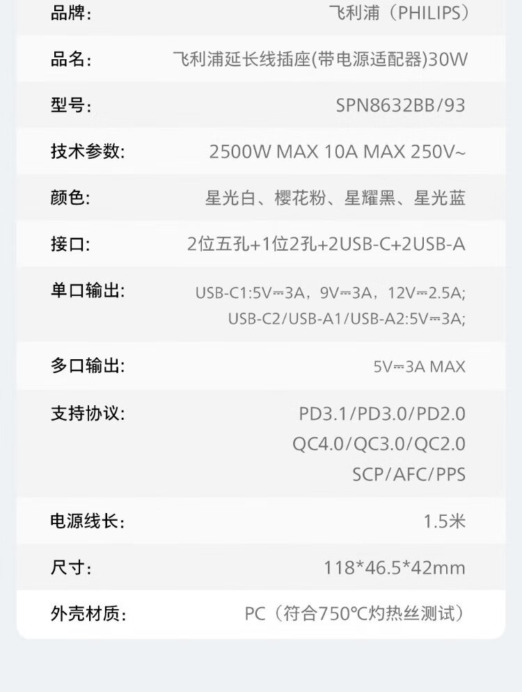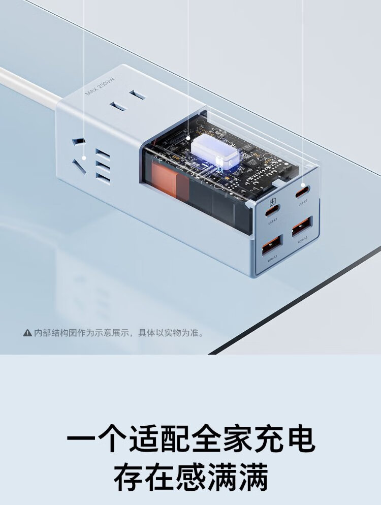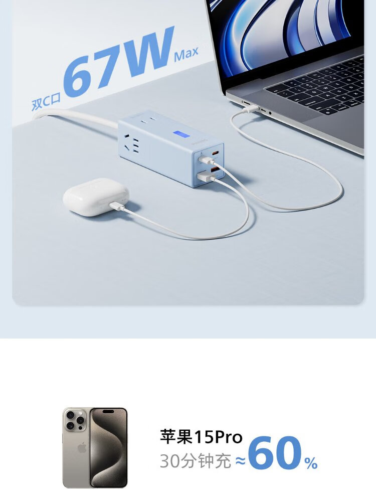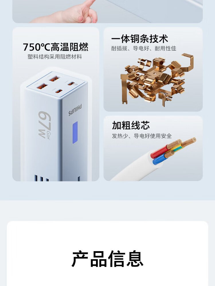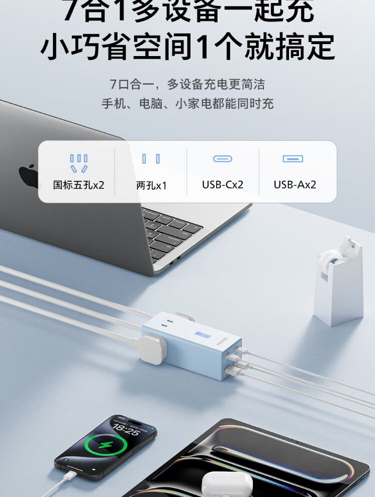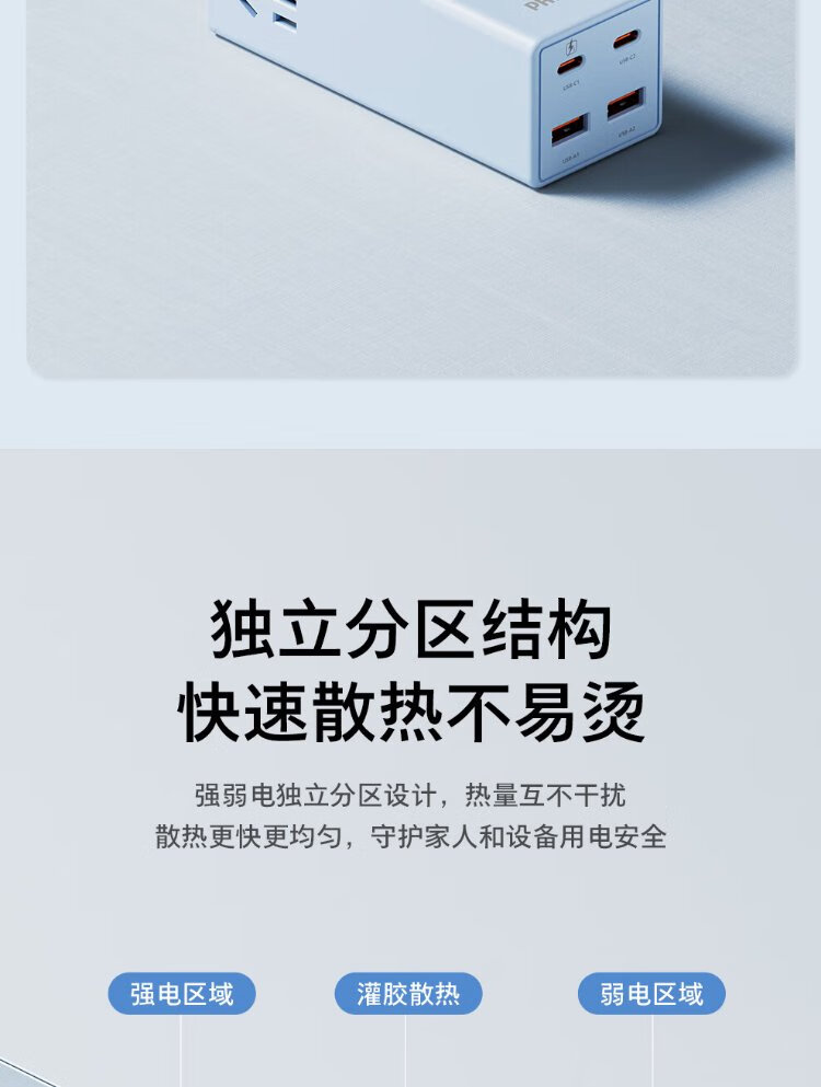 Philips (PHILIPS) Gallium Nitride 67W Charger Fast Charging Laptop Socket/Multifunctional USB Plug Board Portable Power Strip Small Power Cabin Safe Fast Charging 2C2A+3 Positions No Switch Black