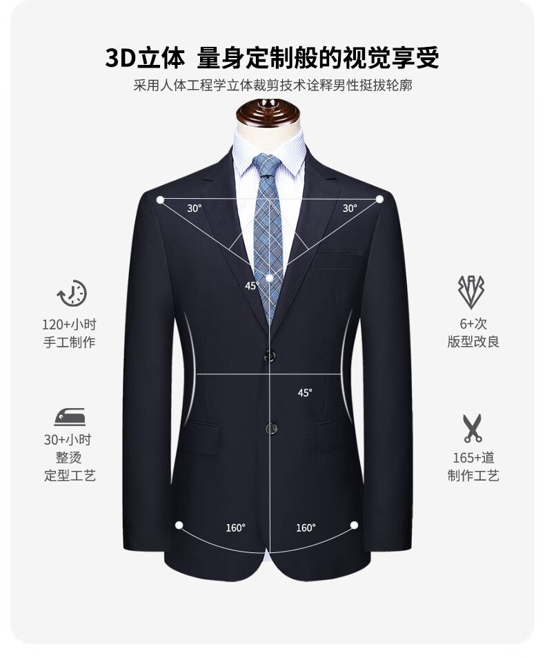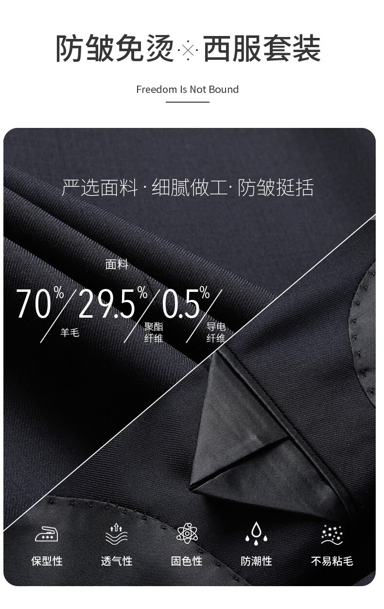 SHANSHAN Shanshan Wool Suit Men's Anti-wrinkle Flat Lapel Suit Western Men's Business Wedding Banquet Formal Wear 2-piece Set
