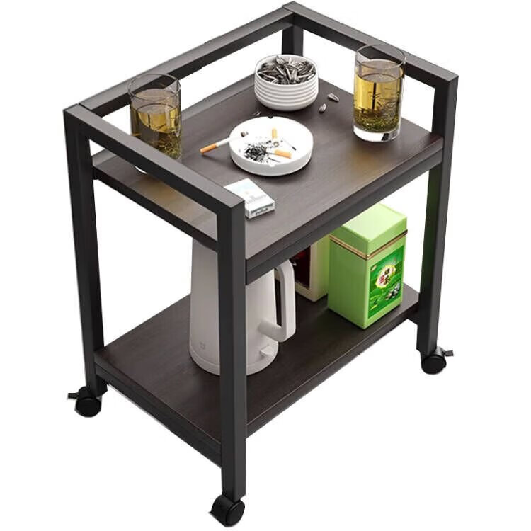 Zhuobo coffee table small table tea table mahjong table side table sofa side table storage rack tea cabinet CJ03 double layer black walnut color