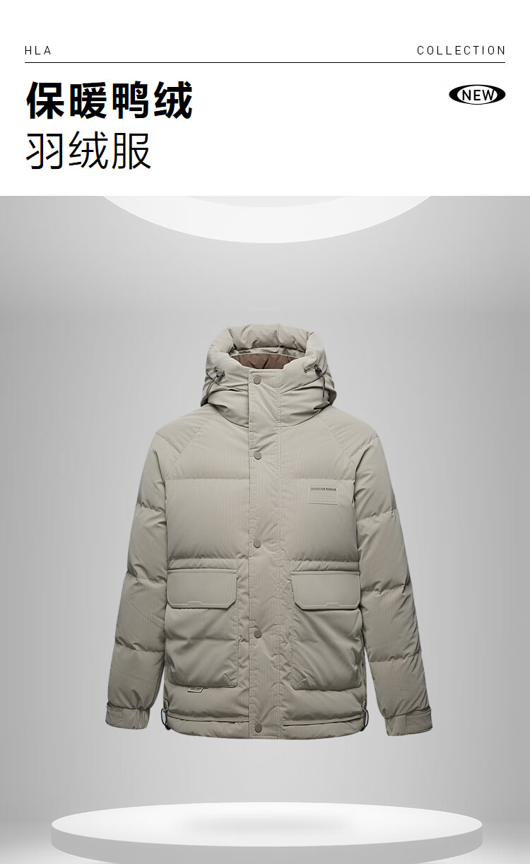 HLA海澜之家羽绒服男保暖鸭绒连帽条纹外套男冬季