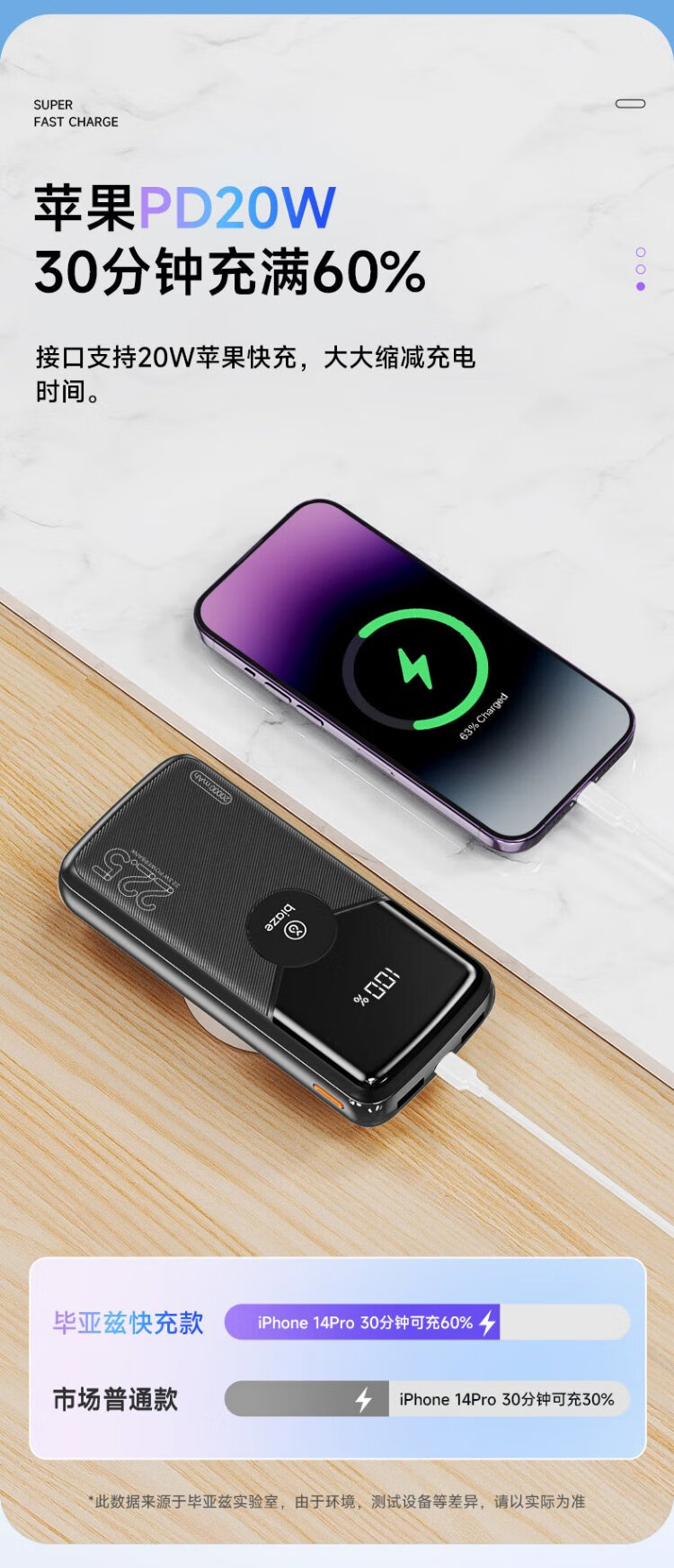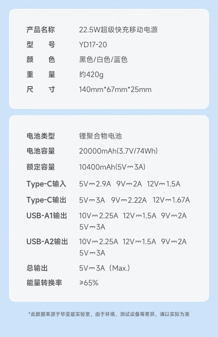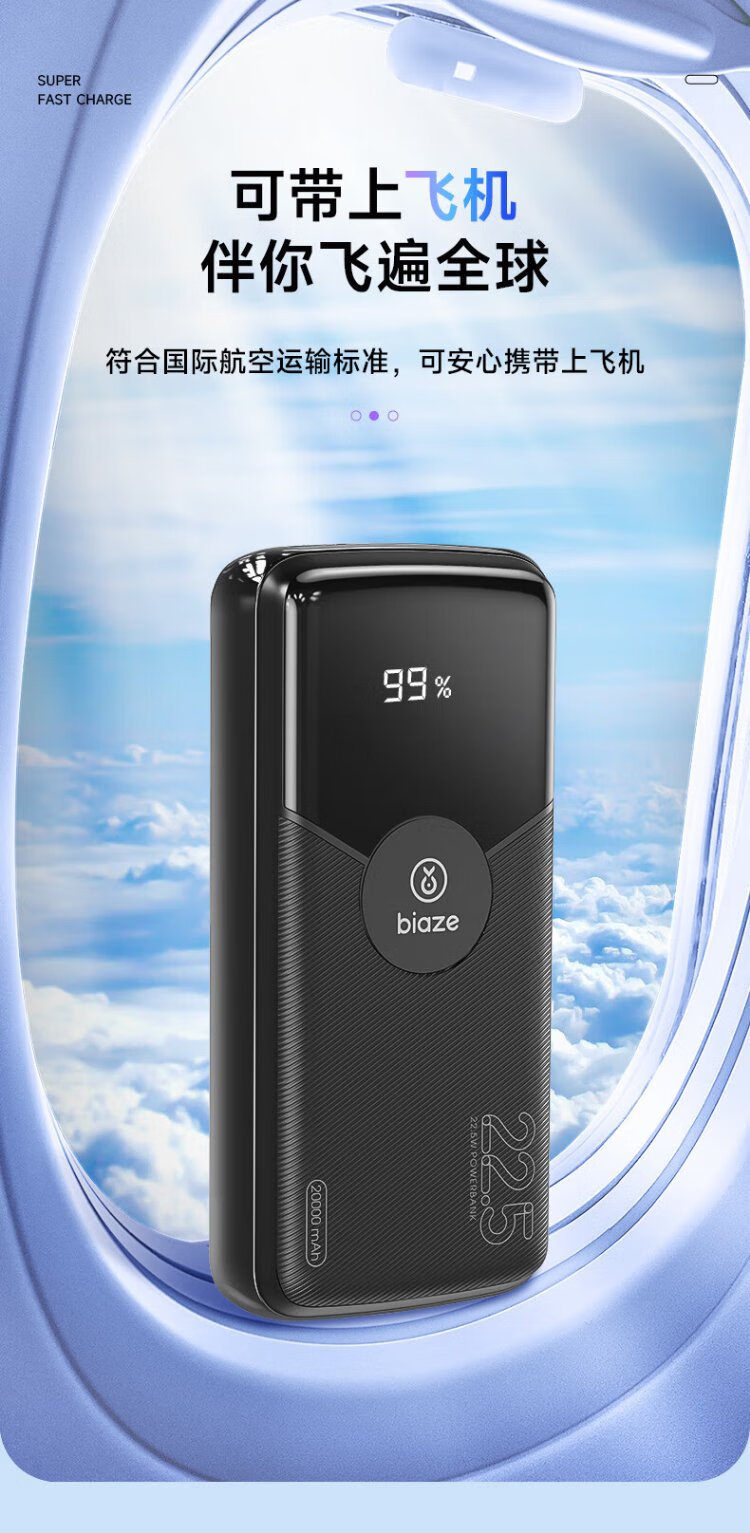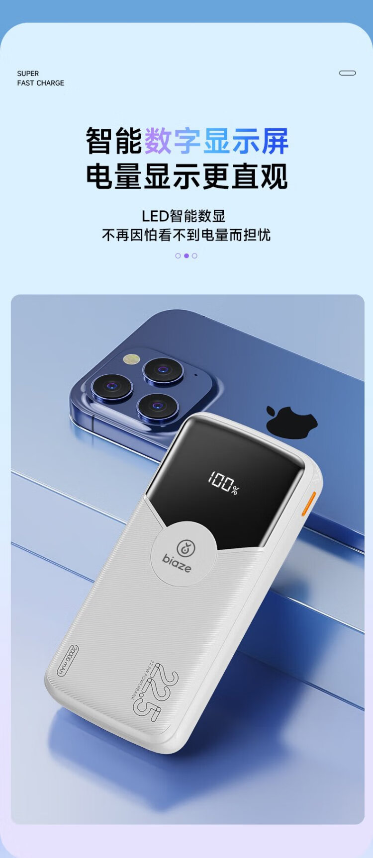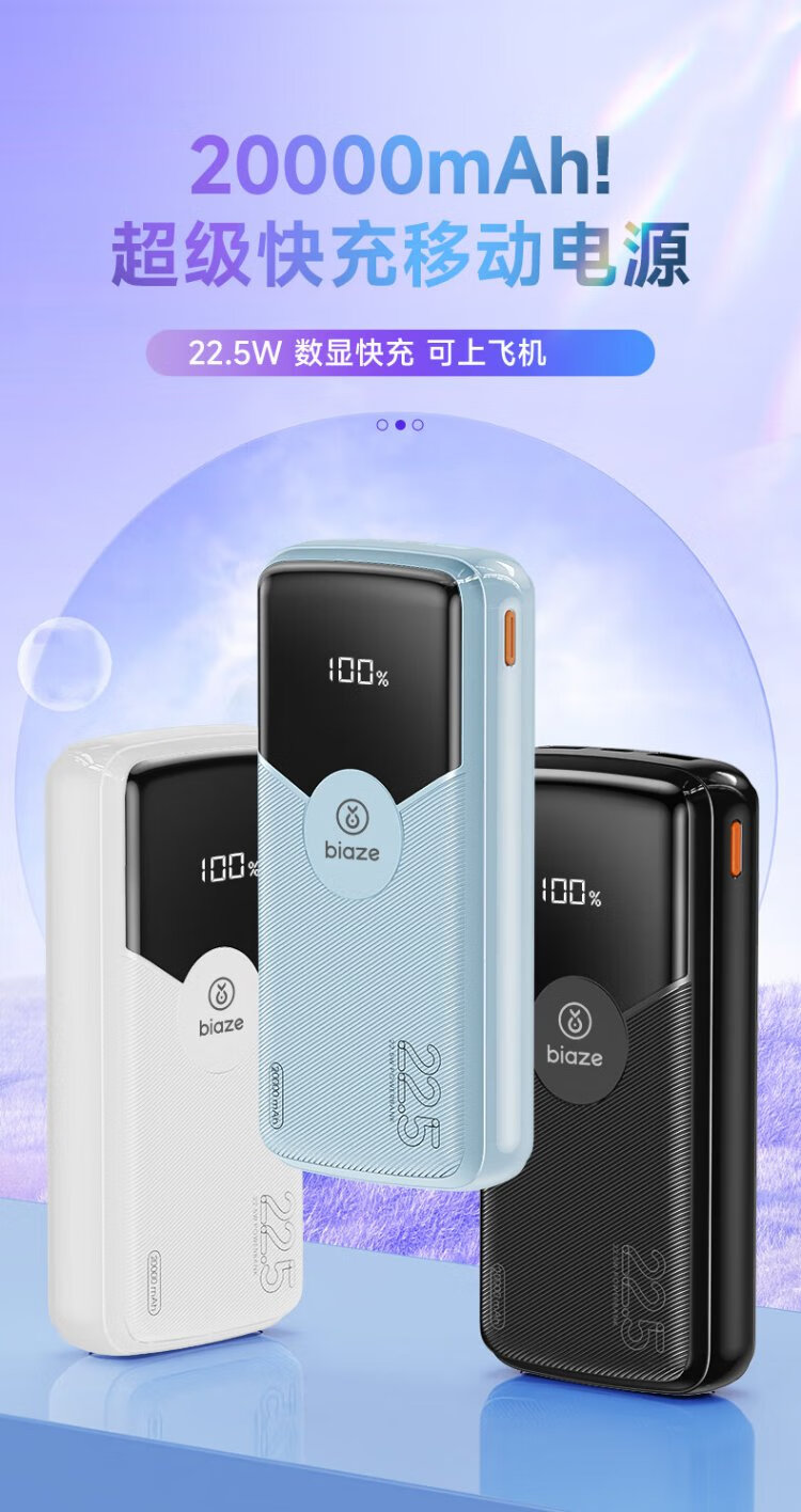 Biaz 3C certified power bank 20000 mAh 22.5W super fast charging Apple 18/20W large capacity mobile power supply suitable for Apple 17 Android Huawei Xiaomi YD17 white