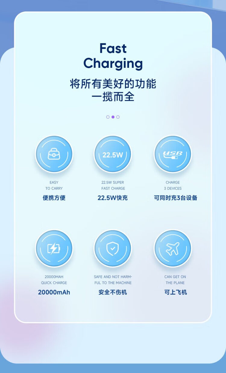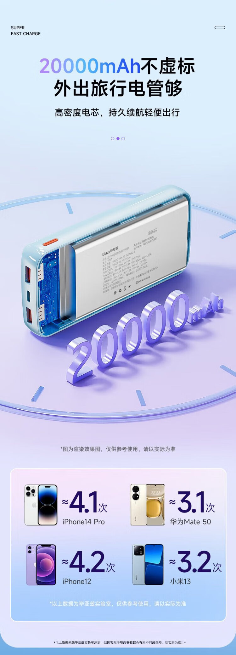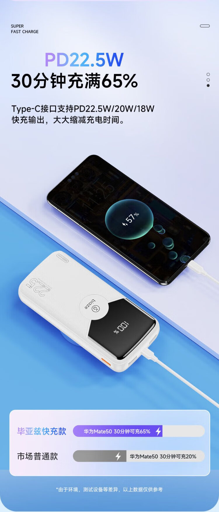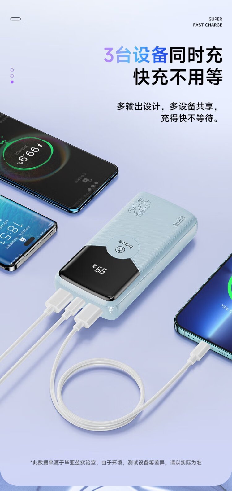 Biaz 3C certified power bank 20000 mAh 22.5W super fast charging Apple 18/20W large capacity mobile power supply suitable for Apple 17 Android Huawei Xiaomi YD17 white