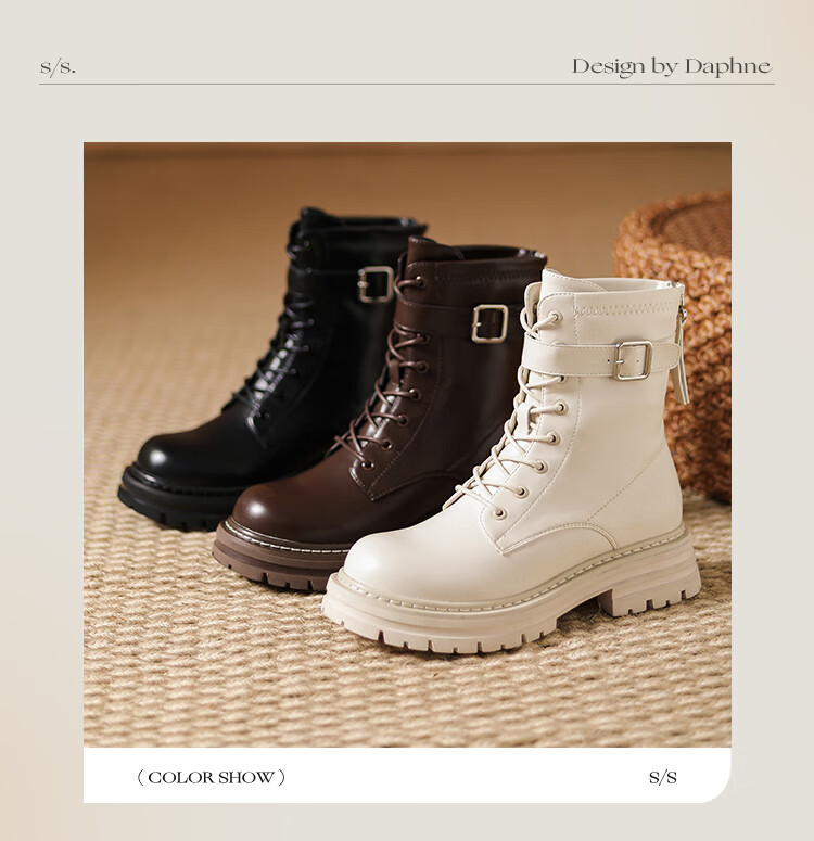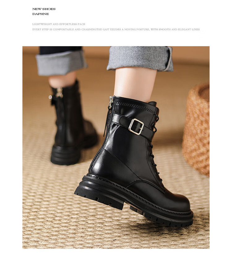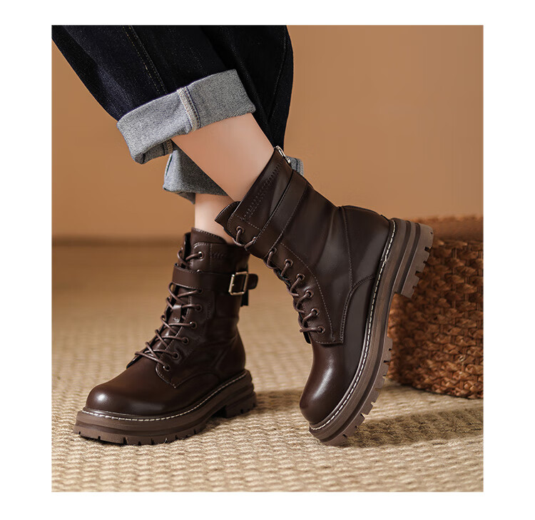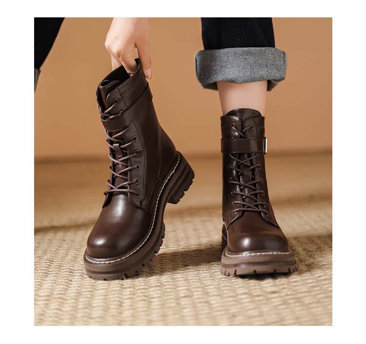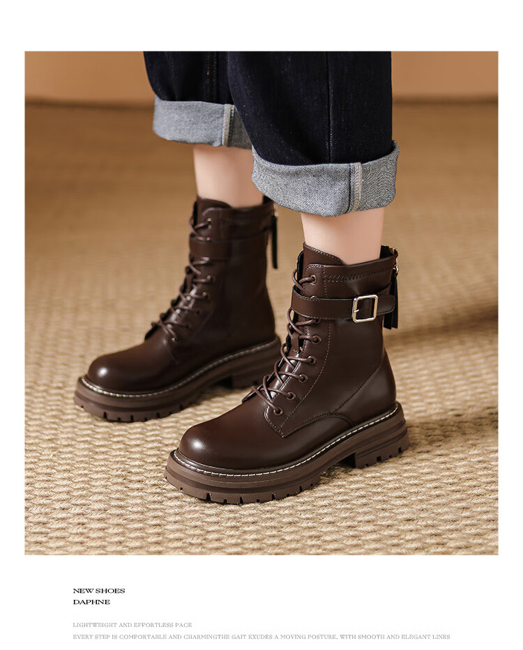 Daphne thick-soled Martin boots for women, autumn and winter short boots for women, versatile single boots, British style mid-calf boots for women, brown 38