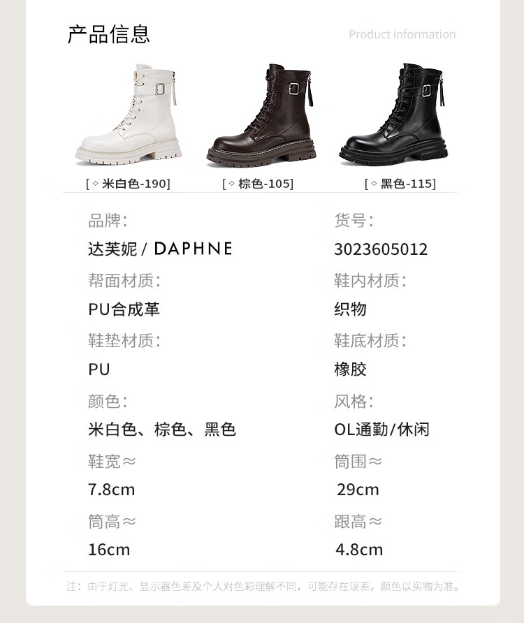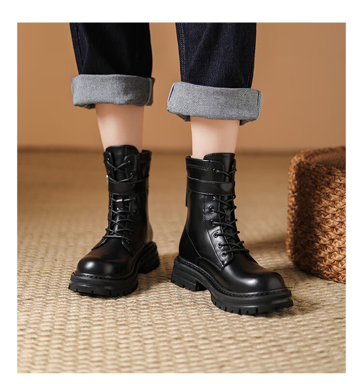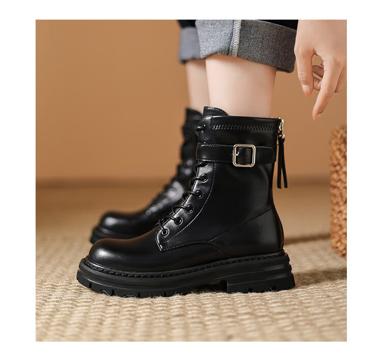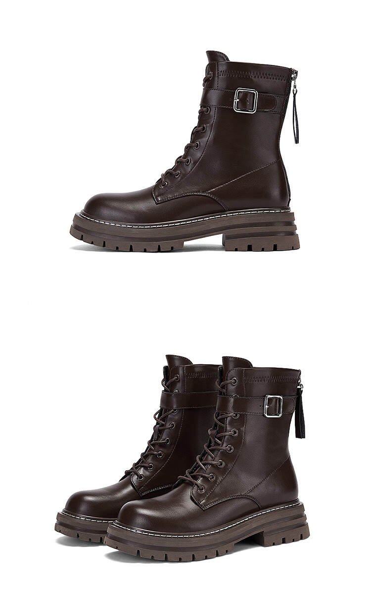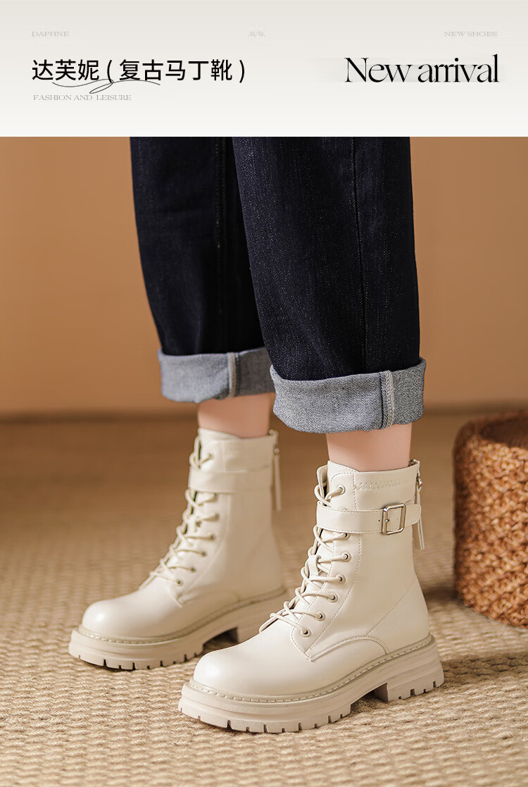 Daphne thick-soled Martin boots for women, autumn and winter short boots for women, versatile single boots, British style mid-calf boots for women, brown 38