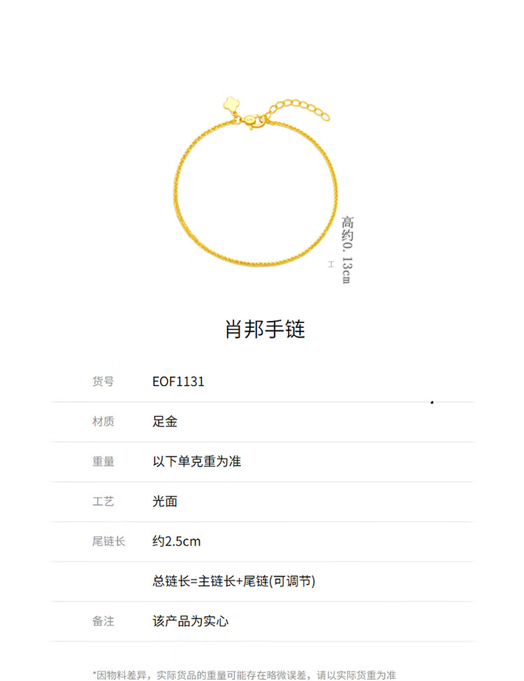 Chow Tai Fook Chopin chain gold chain bracelet (labor cost 260) 15cm about 1.9g EOF1131 New Year gift