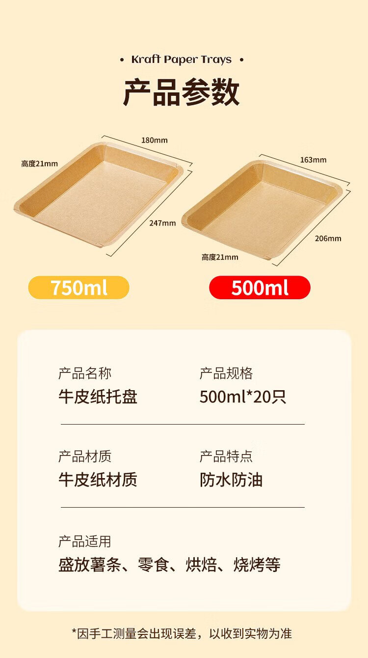 Blue natural disposable plates 500ml*20 biodegradable kraft paper plates barbecue plates trays dinner plates picnic camping tableware