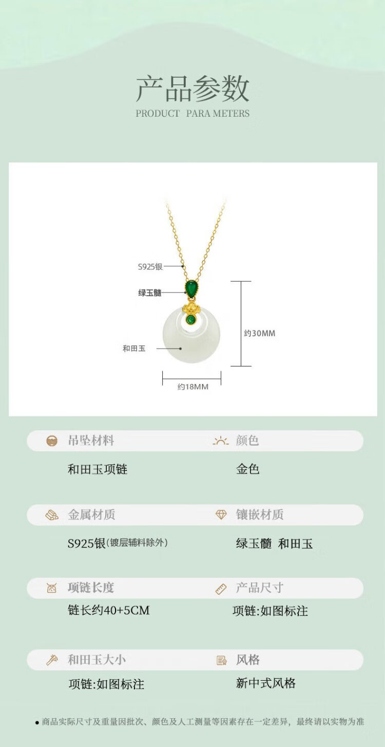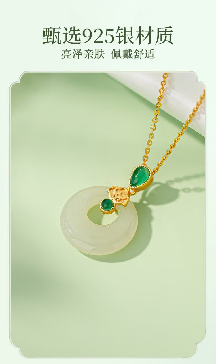 Qlady Safe Buckle Hetian Jade Silver Necklace Women's Light Luxury Silver Jewelry Jade Pendant Mother's Birthday Gift for Wife