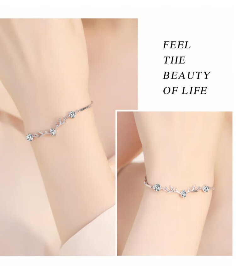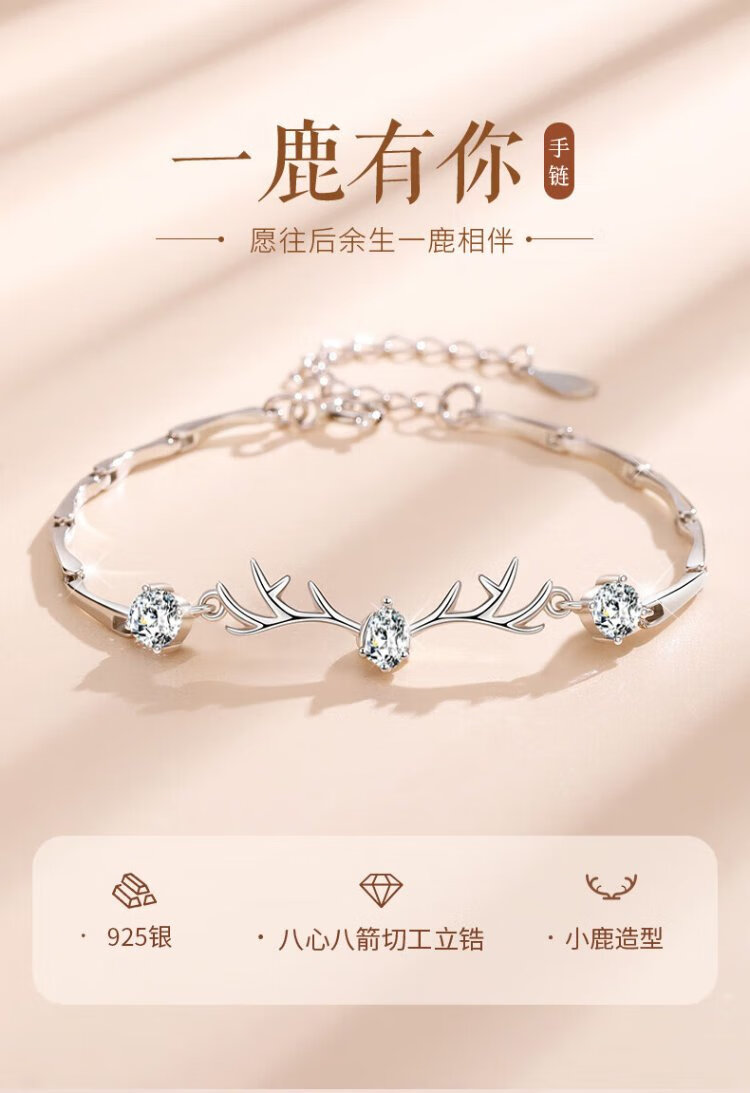 Zhen Shang Silver Chinese Gold Four Leaf Clover Silver Bracelet Women's Bracelet Light Luxury Niche Birthday Gift Commemorative Gift for Girlfriend and Wife S925