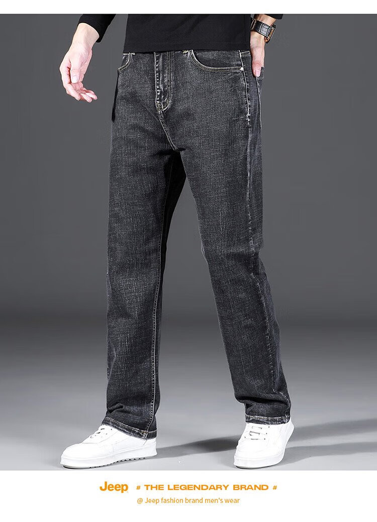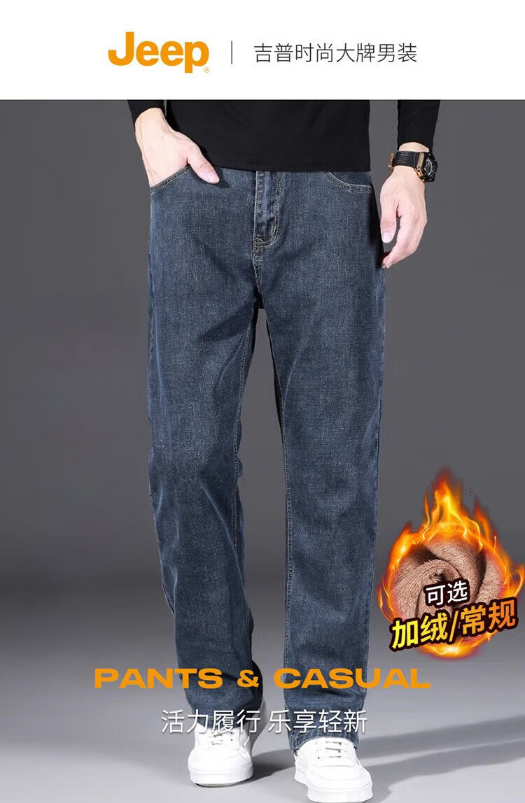 JEEP jeans men's autumn and winter straight loose casual pants business versatile men's pants blue gray 34