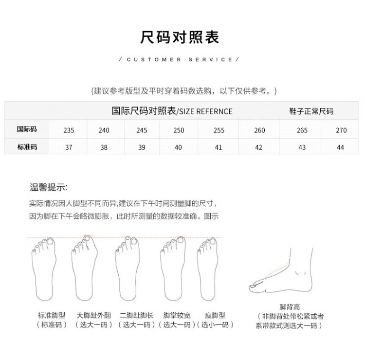 China (cm) 36 - 37 38 - 39 40 - 42 43 - 44 45 - 47