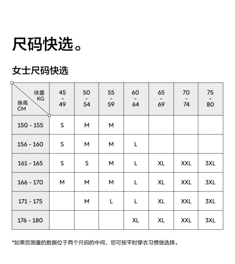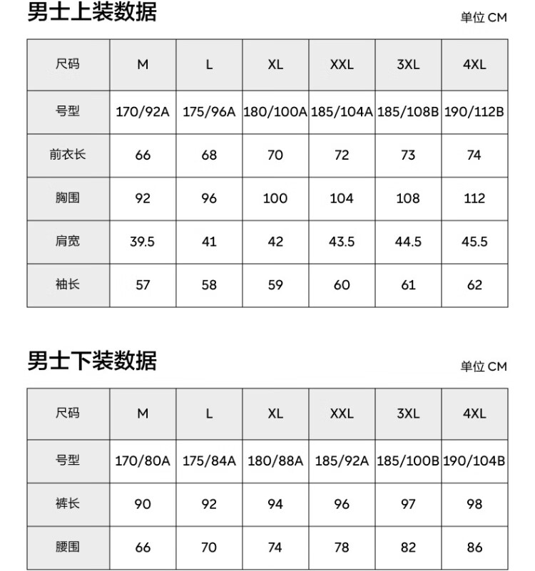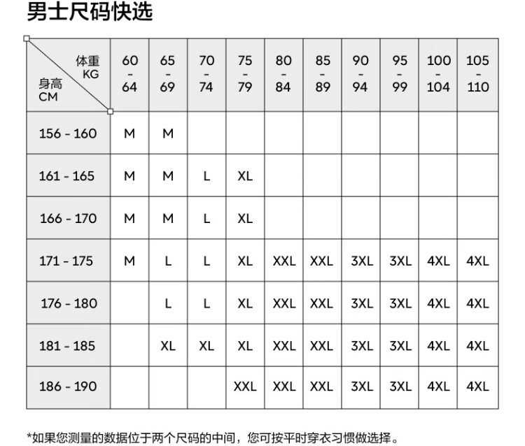 China (cm) 160-165/84-86 165-170 / 88-90 167-172 / 92-96 168-173 / 98-102 170-176 / 106-110